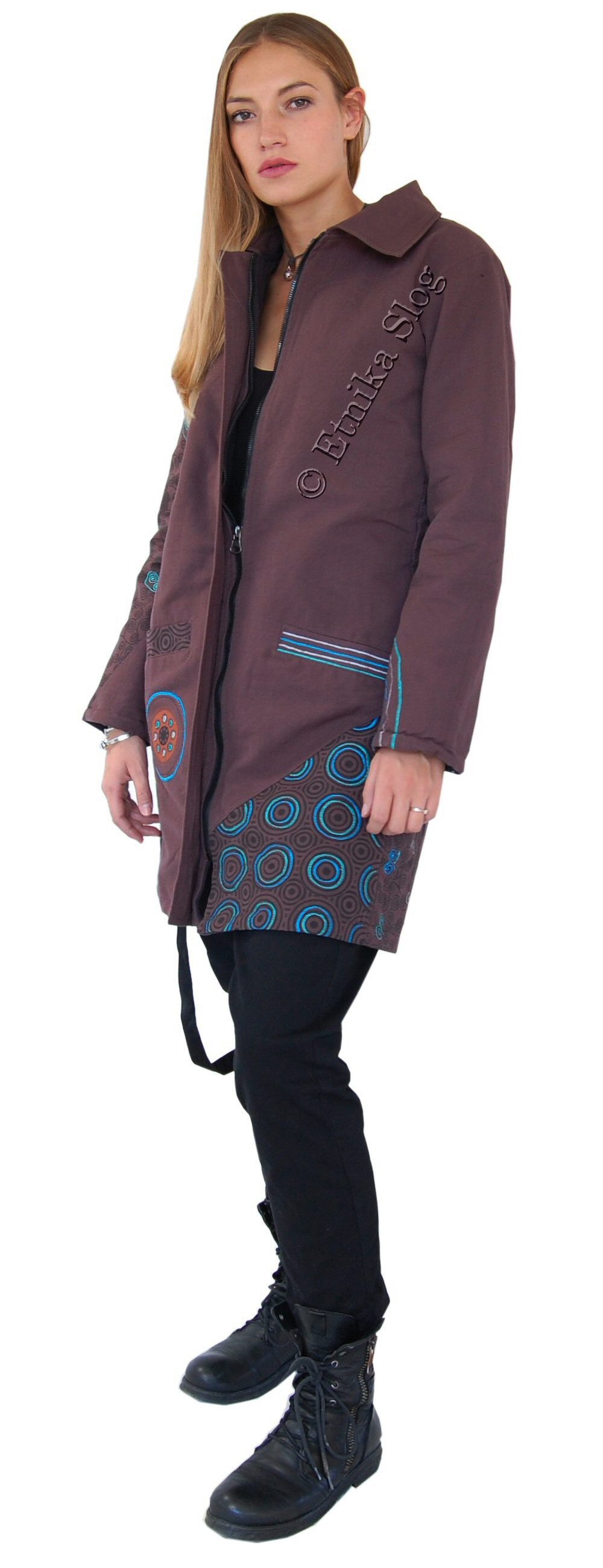 COAT IN COTTON, WITH FLEECE INSIDE, PLAIN COLOUR WITH EMBROIDERED CIRCLES,