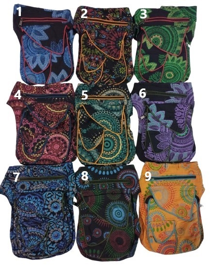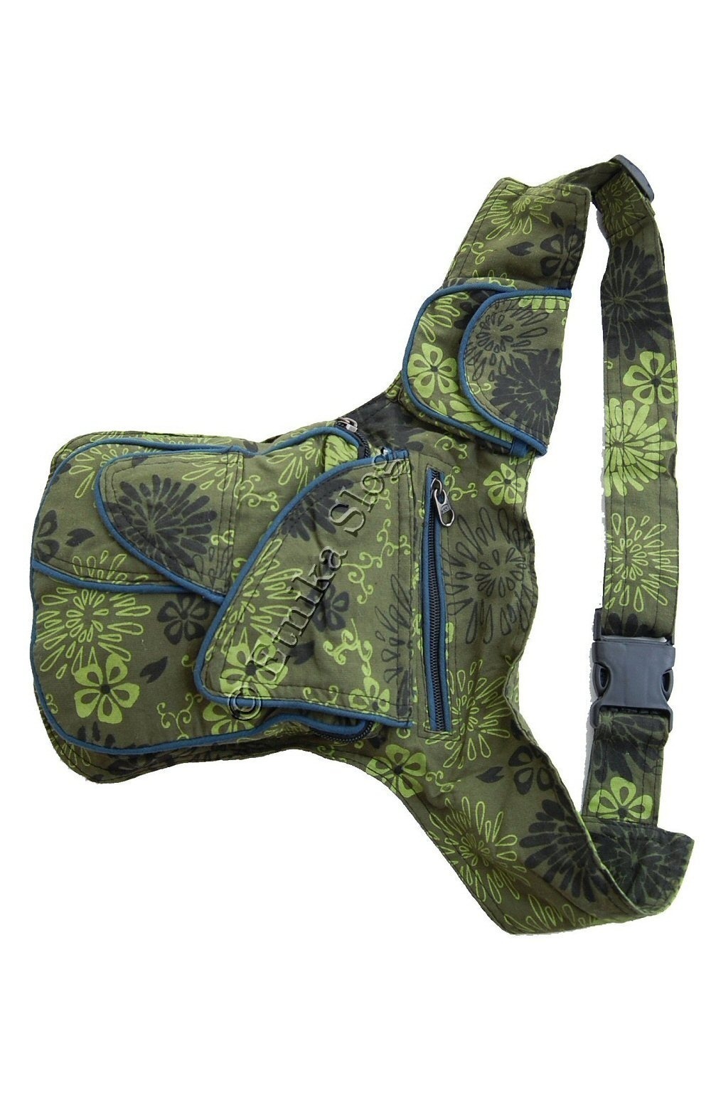 SIDE BUM BAG MADE OF COTTON, WITH PRINTS AND FIVE SECTIONS,