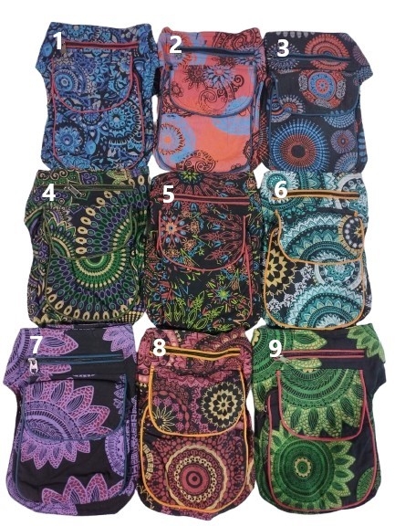 SIDE BUM BAG MADE OF COTTON, 4 POCKETS WITH ZIP.