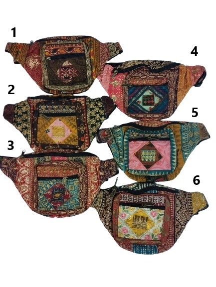 BUM BAG MADE OF COTTON, WITH PRINTS AND PATCHES.