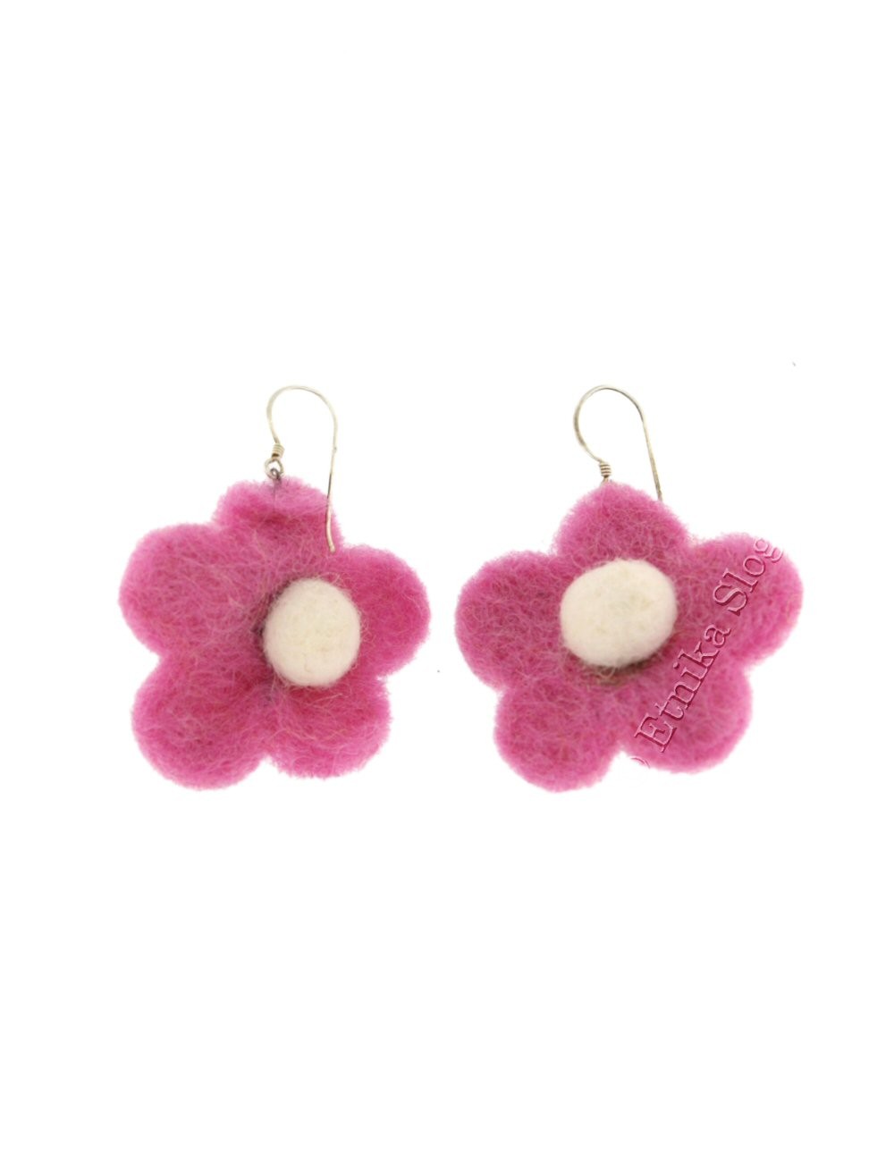 EARRINGS IN FELT, SIMPLE FLOWER, WITH SILVER HOOK.