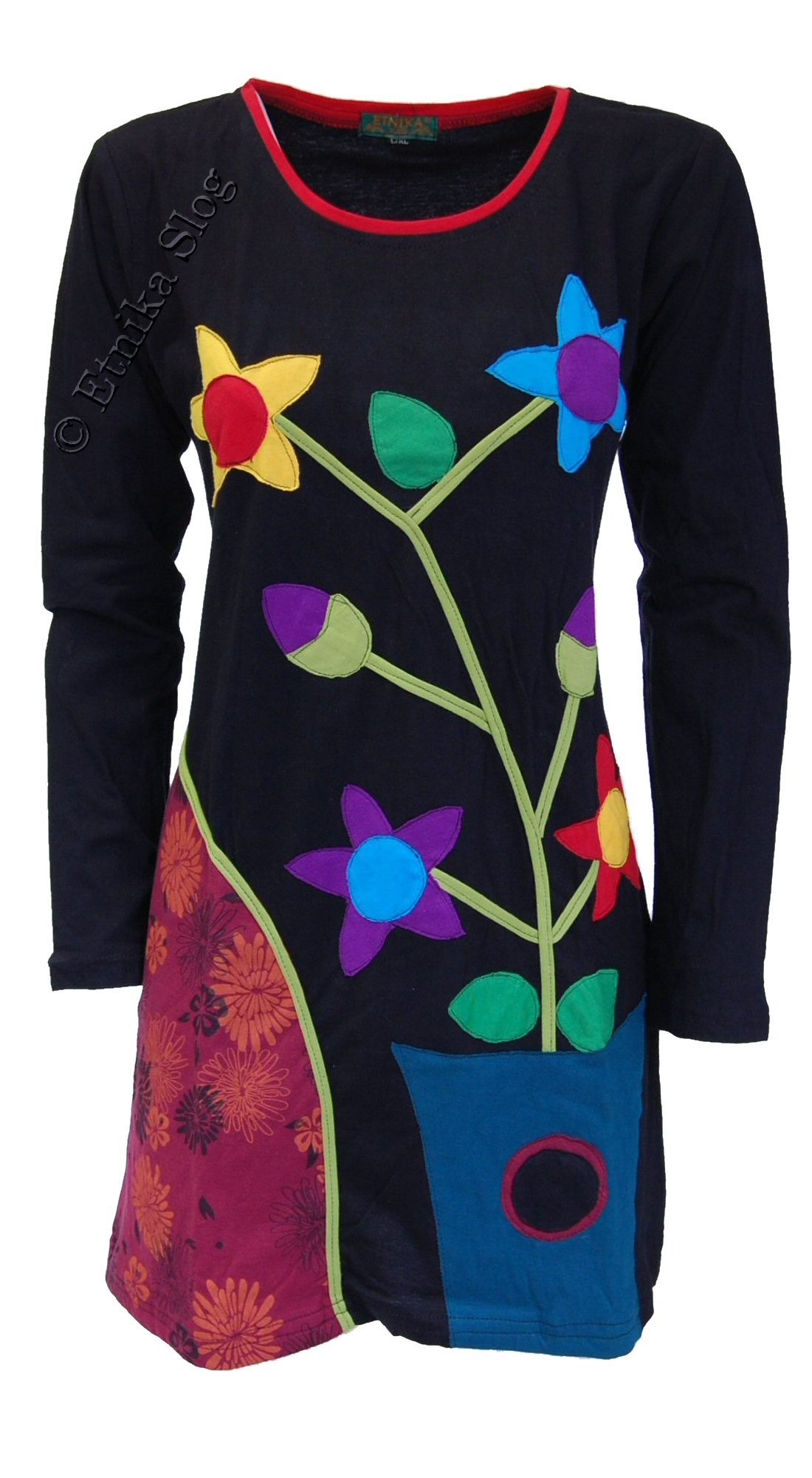 COTTON DRESS WITH LONG SLEEVES, WITH A FLOWER AND ROUND NECKLINE.