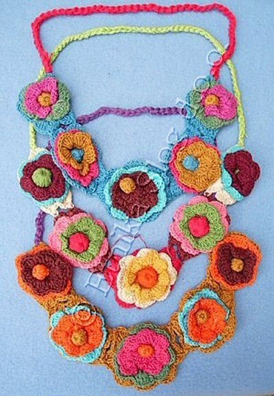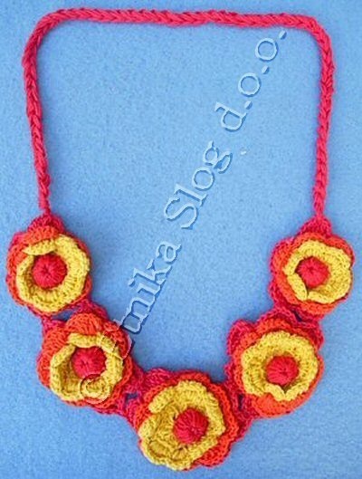 NECKLACE IN CROCHET COTTON WITH 5 FLOWERS.