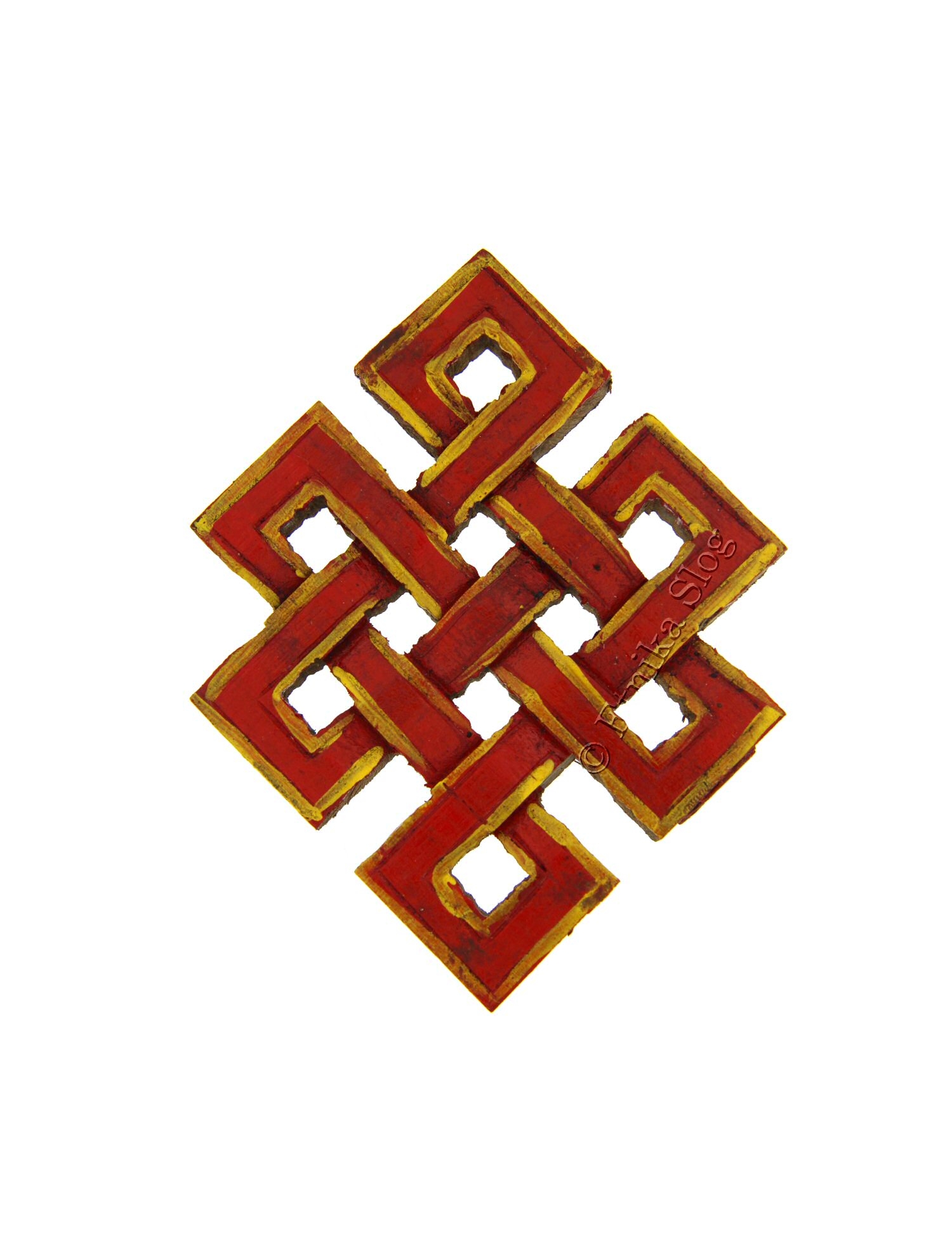 NEPALESE WALL DECORATION, MOTIVE ENDLESS KNOT MADE OF PAINTED WOOD, SIZE APPROX. CM 10,5X8.