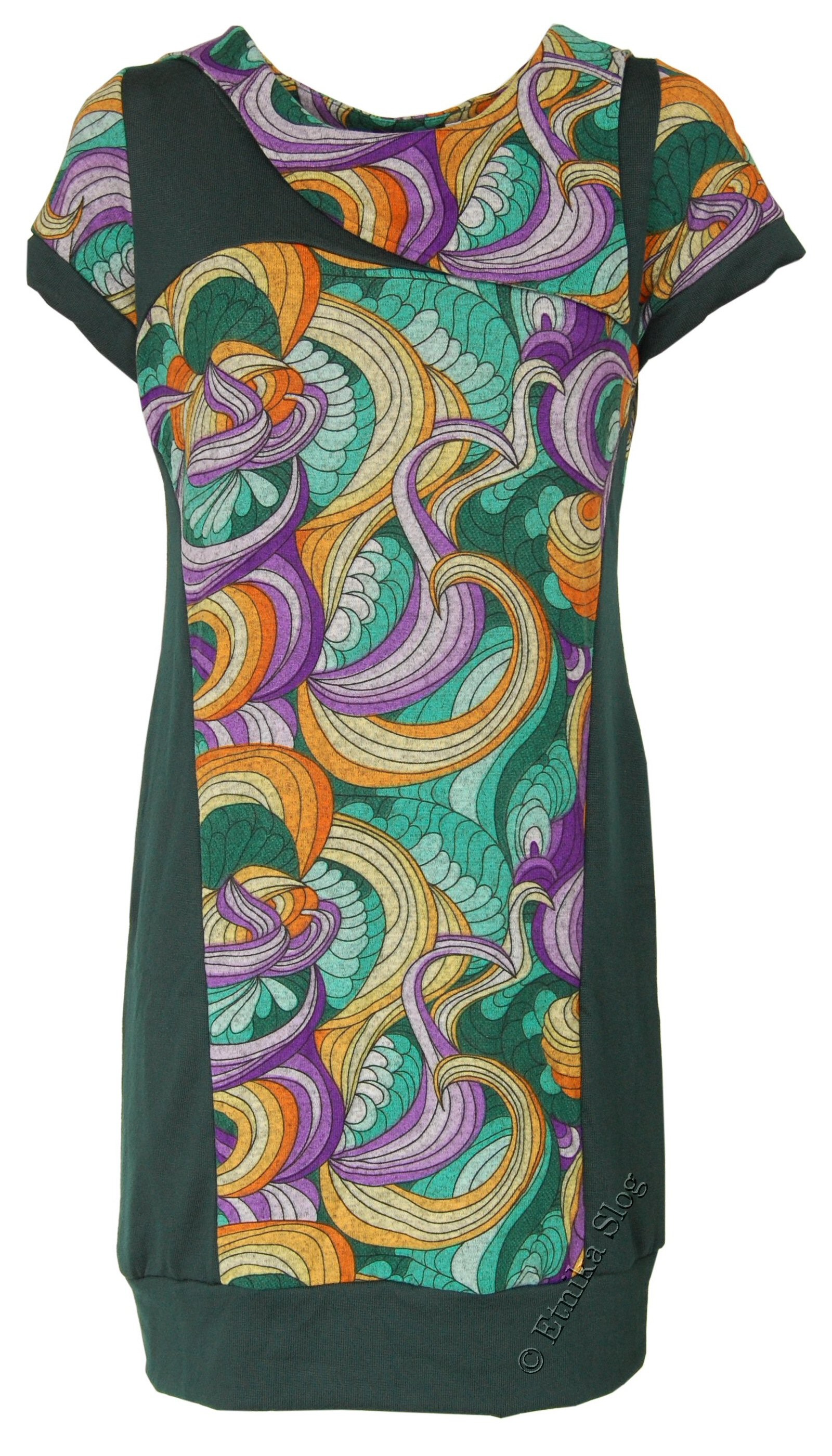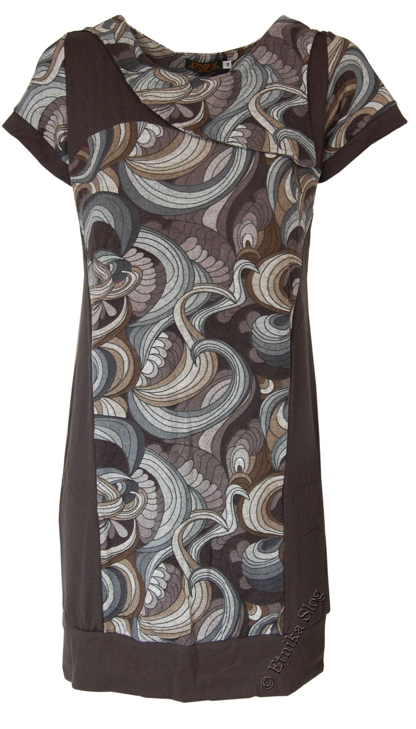 DRESS IMADE OF COTTON AND VISCOSE WITH ELASTANE, WITH SHORT SLEEVES, MOTIVE CURLS.