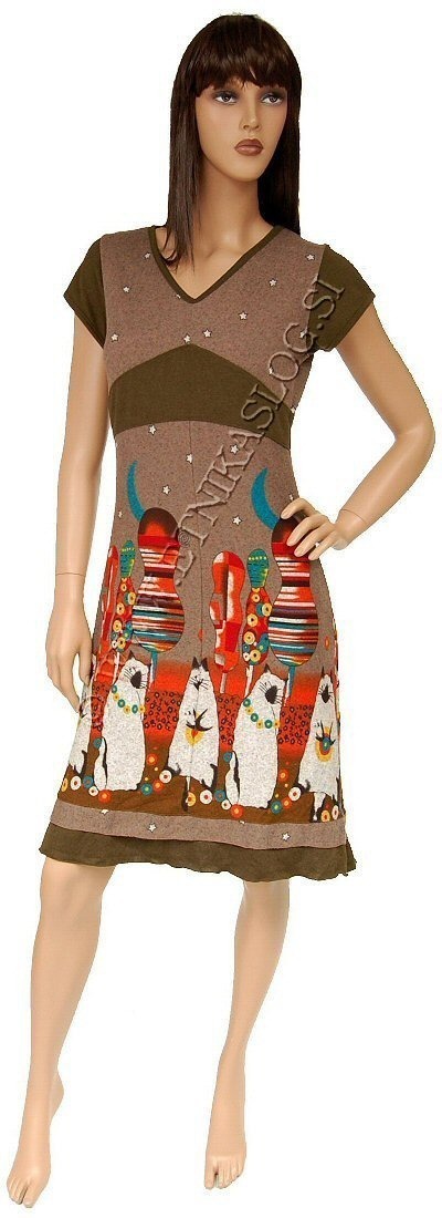 DRESS MADE OF COTTON AND VISCOSE WITH ELASTANE, WITH SHORT SLEEVES, MOTIVE UNREAL CATS.