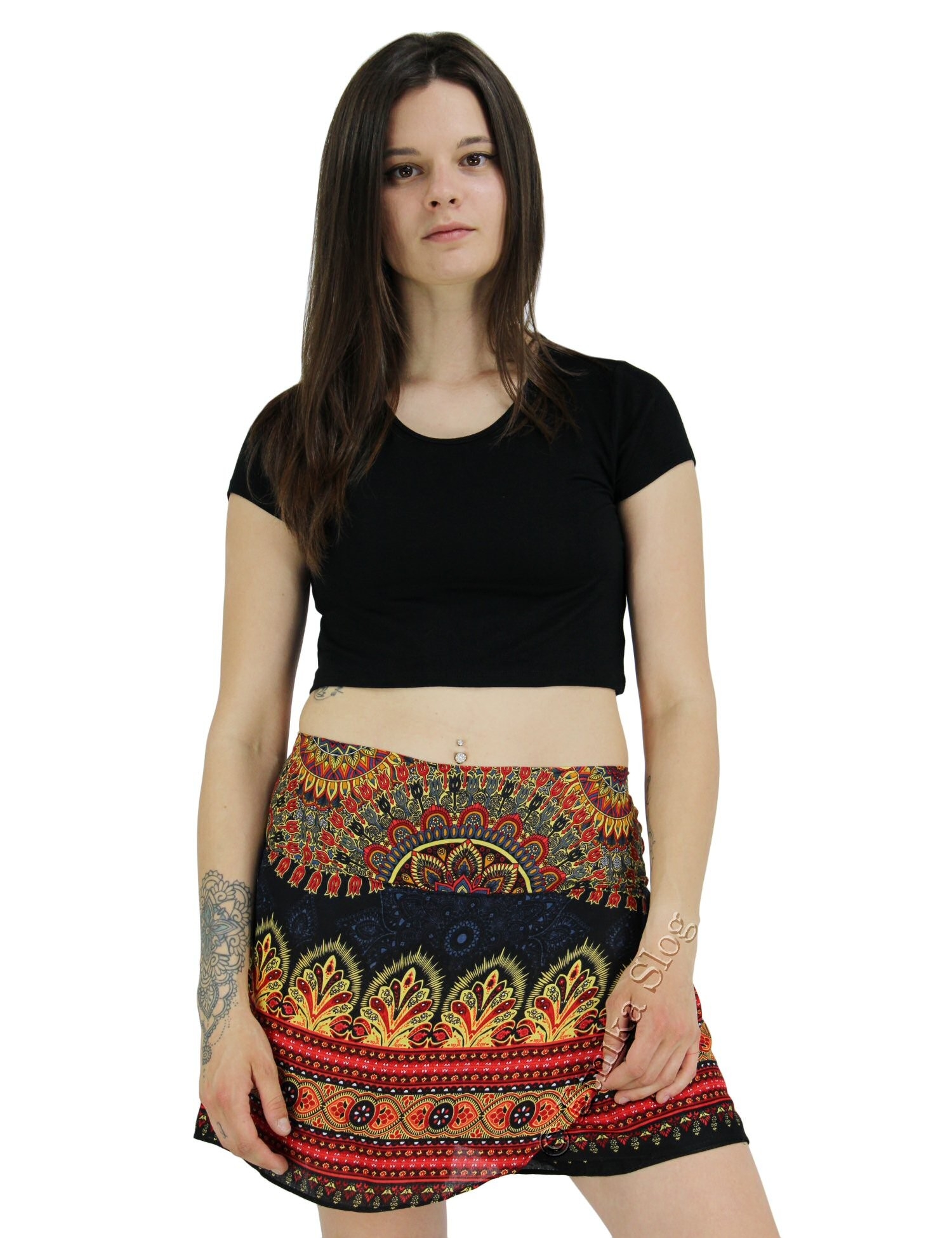 LONG SKIRT IN LIGHTWEIGHT INDIAN COTTON, WITH AN ELASTIC BAND AT WAIST, WITH VOLANTS.FEATURING A FLOWER PRINT, AS SHOWN IN THE PHOTOS.ONE SIZE.