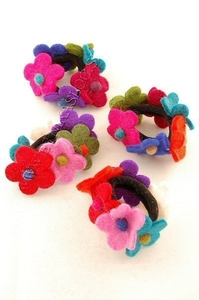 HAIR ELASTIC BAND MADE OF WOOL FELT WITH 6 FLOWERS. MULTICOLOR