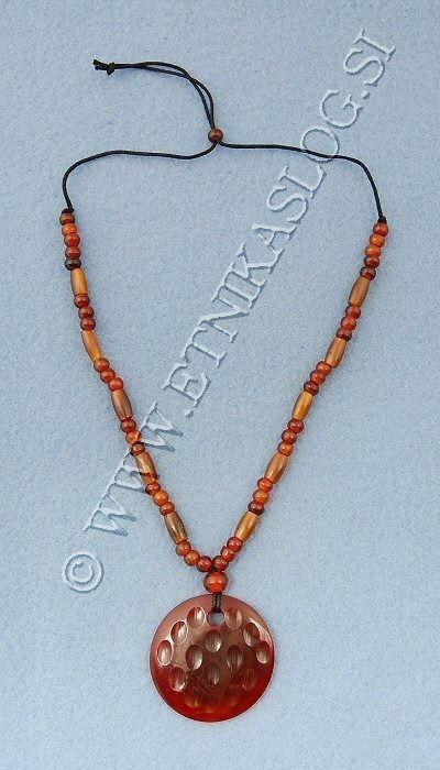 NECKLACE WITH COMPONENTS MADE OF HORN WITH PENDENT AND PERLS, IN DIFFERENT COLORS.