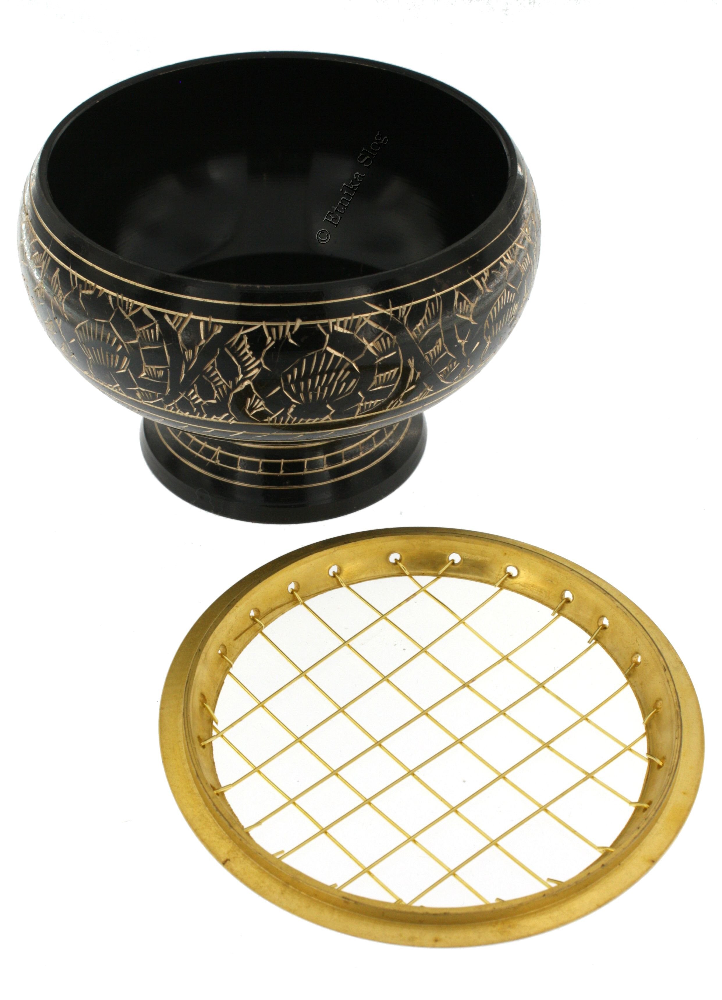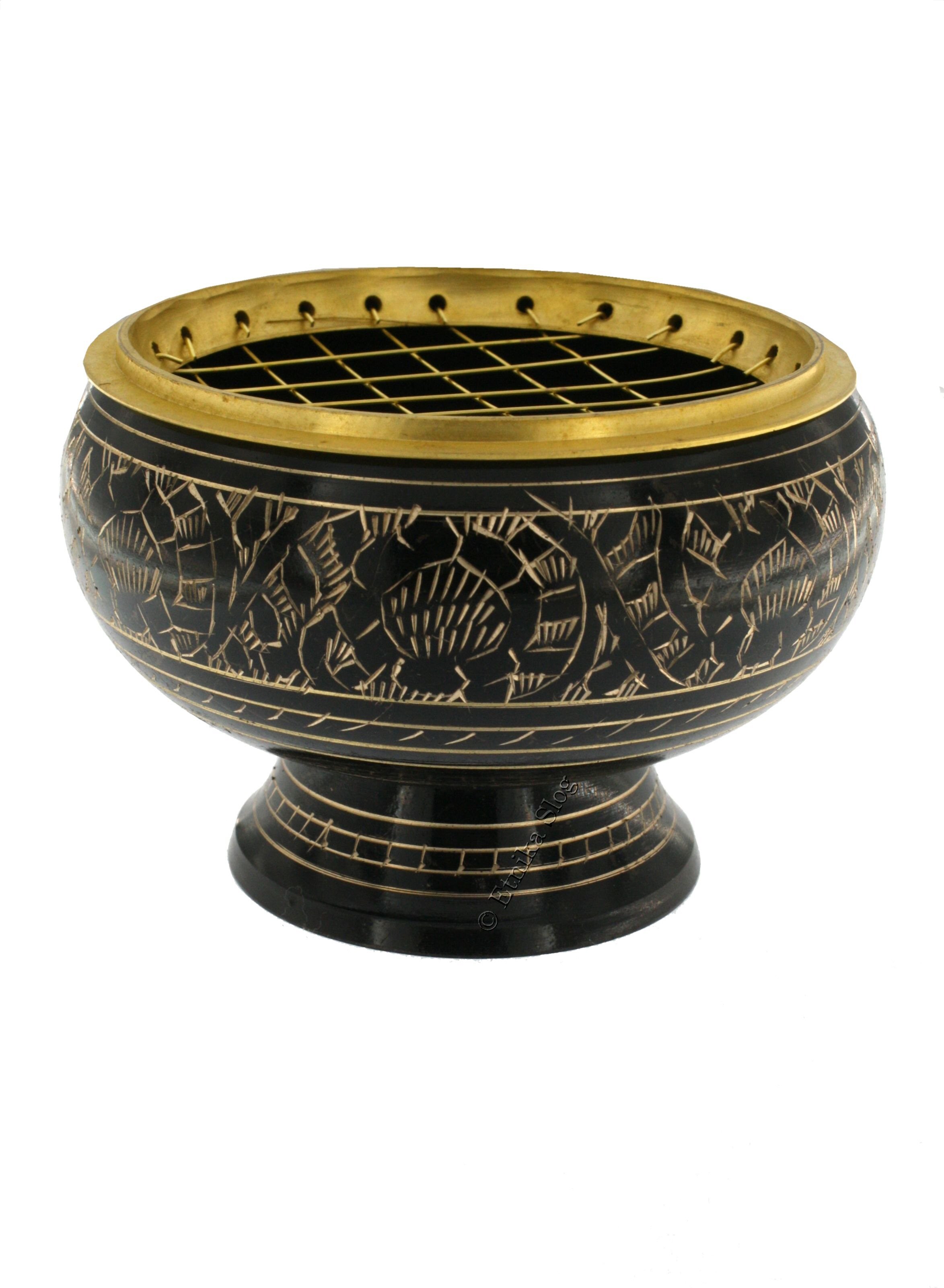 CARVED INCENSE BURNER FOR GRAIN INCENSE, MADE OF BRASS, WITH REMOVABLE GRID.