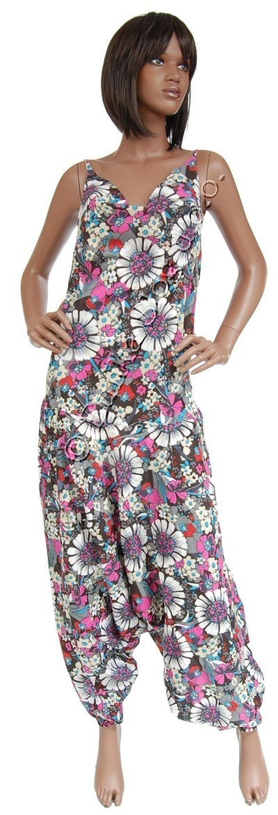 DUNGAREES MADE OF COTTON, WITH PRINTED FLOWERS, WIDE NECK AND NARROW ADJUSTABLE SHOULDER STRAPS.
