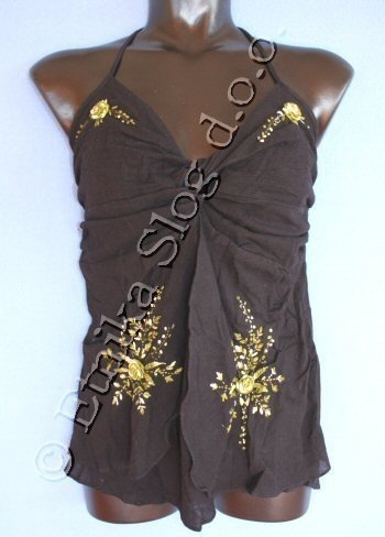 TOP DRESS IN COTTON, THIN SHOULDER STRAPS, WITH ELASTIC BAND ON THE BACK WITH EMROIDERED FLOWERS.