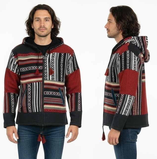 JACKET MADE OF COTTON LINED WITH WARM PILE. WITH HOOD AND POCKET.