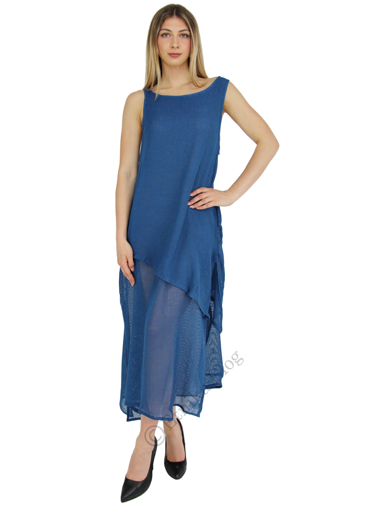 LONG SLEEVELESS DRESS MADE OF 100% RAW ORGANIC COTTON.