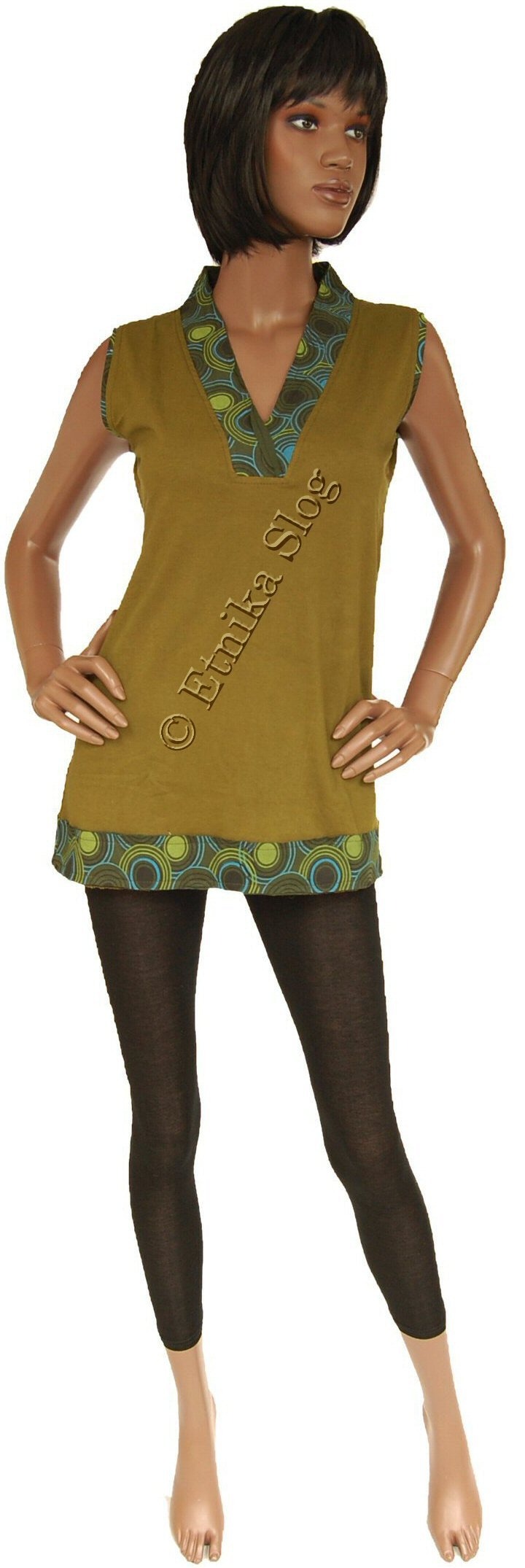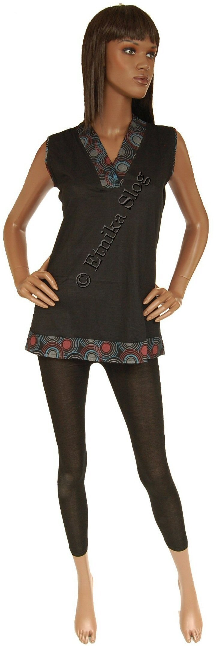 TOP SHIRT IN COTTON, SLEEVELESS, "V" NECK.