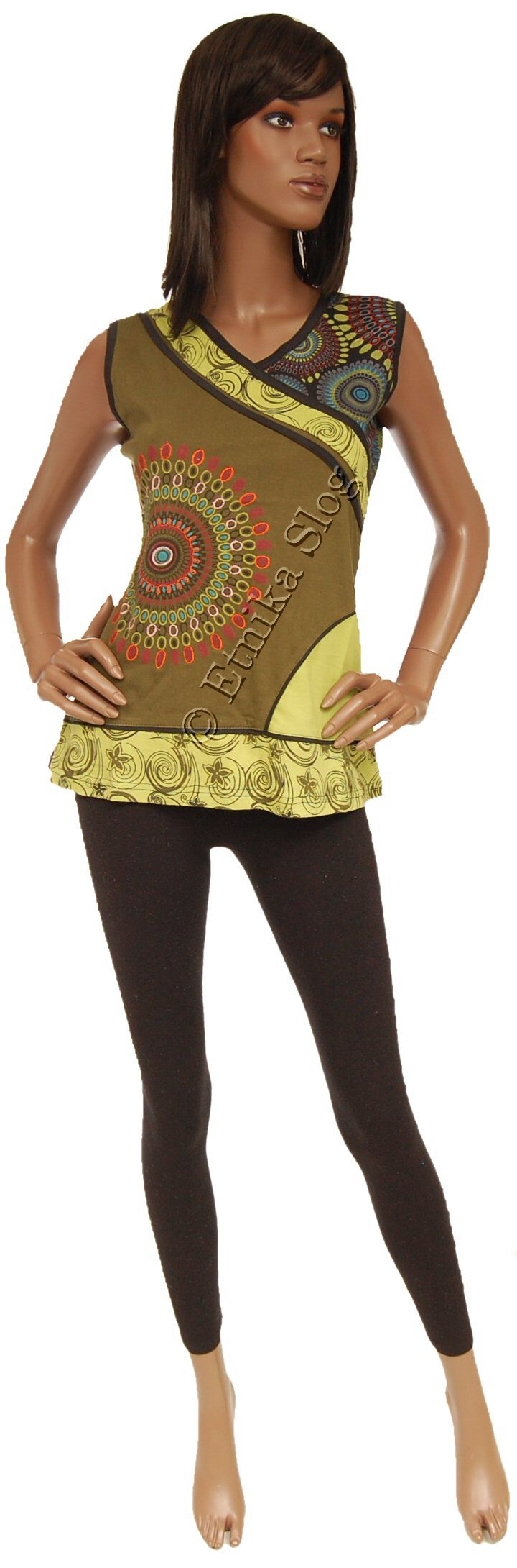 TOP IN COTTON WITH PRINTS, "V" NECKLINE.