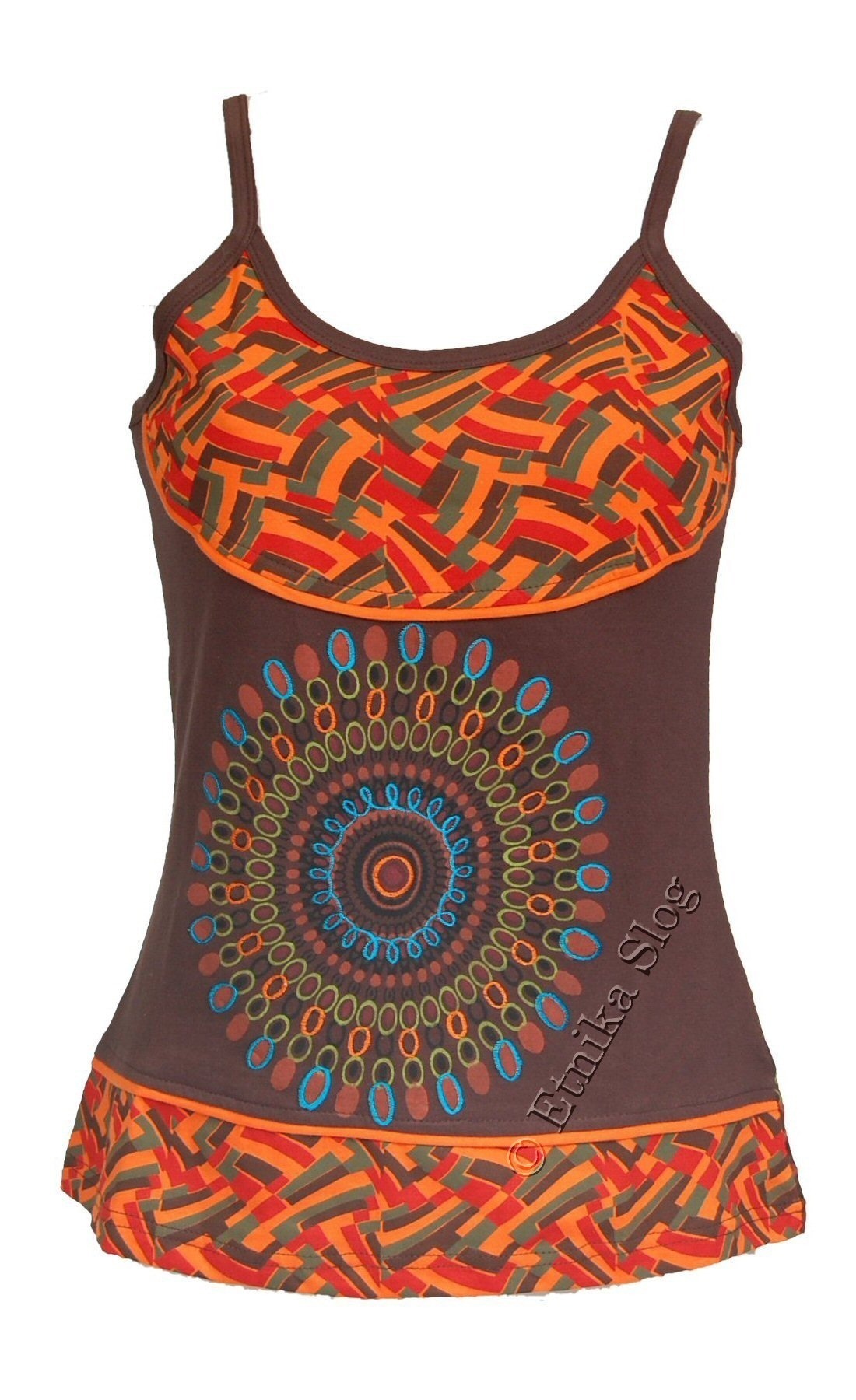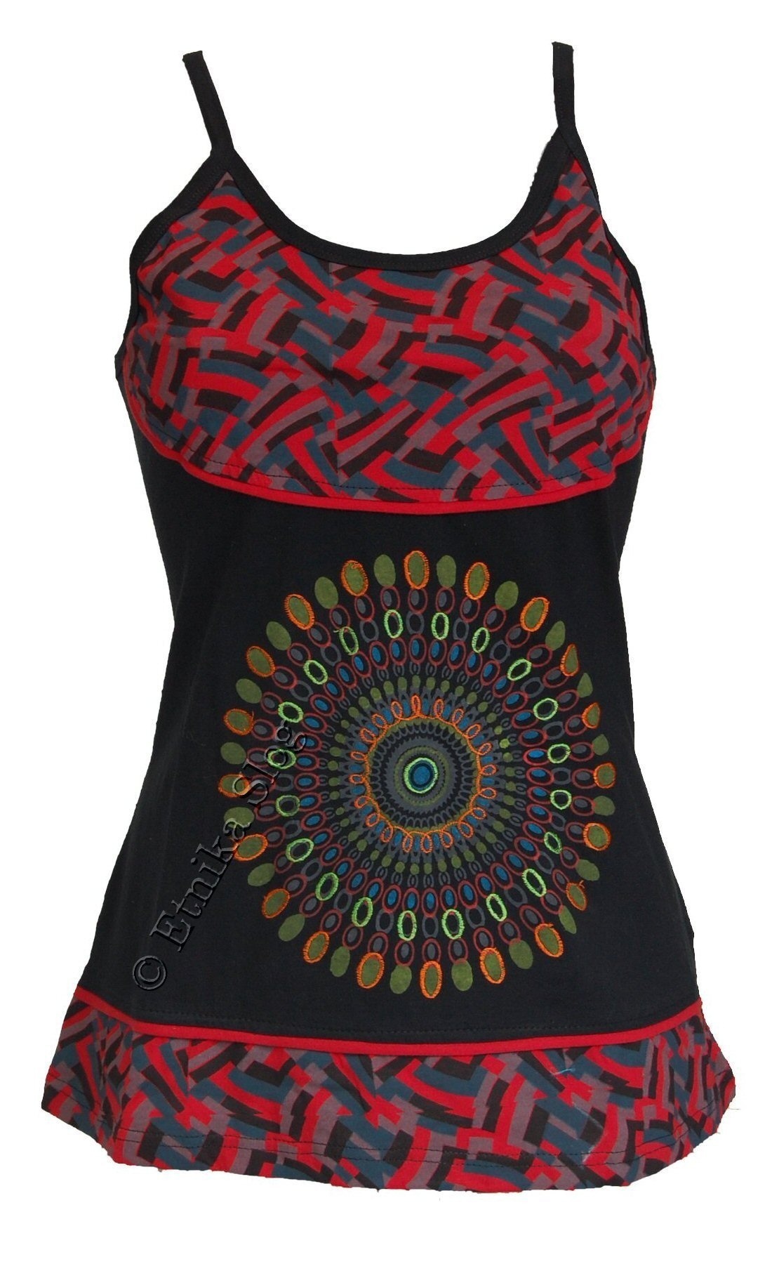 LIGHTWEIGHT COTTON CAMISOLE TOP WITH PRINTS AND EMBROIDERY, NARROW STRAPS.