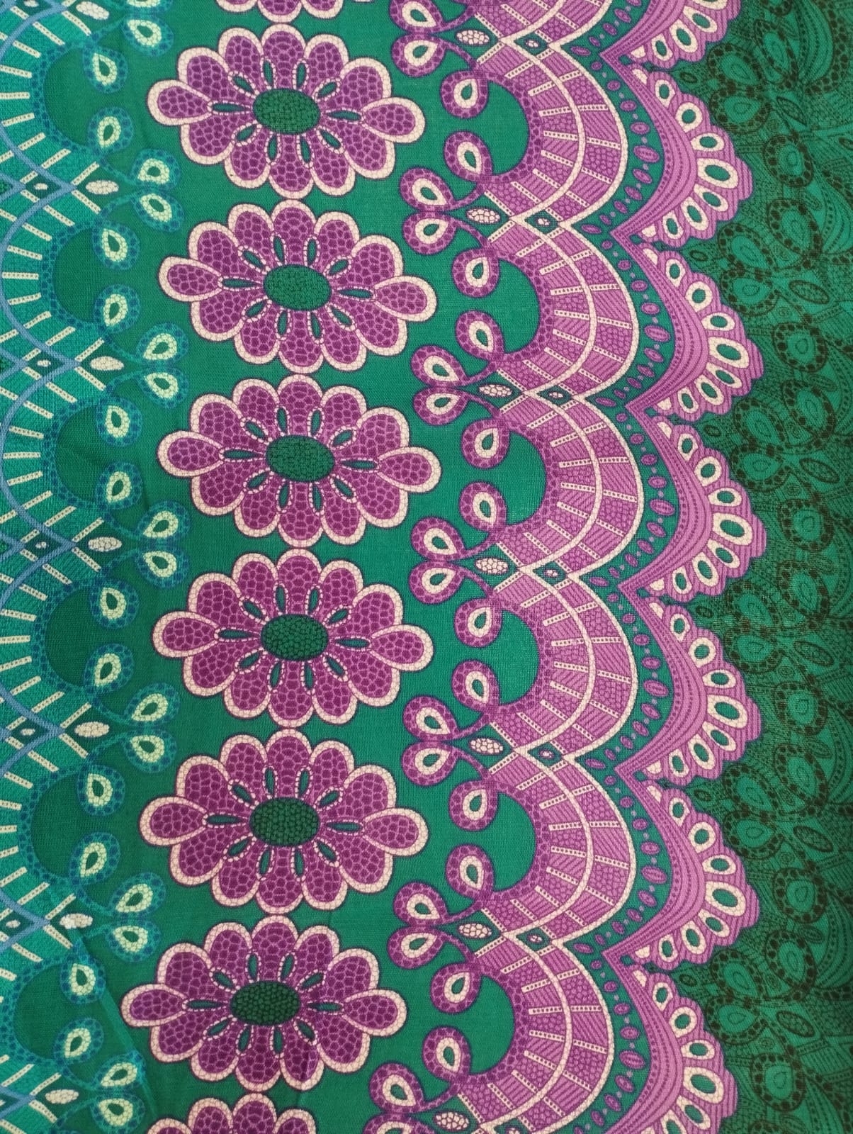 LONG SKIRT IN LIGHTWEIGHT INDIAN COTTON, WITH AN ELASTIC BAND AT WAIST, WITH VOLANTS.FEATURING A FLOWER PRINT, AS SHOWN IN THE PHOTOS.ONE SIZE.