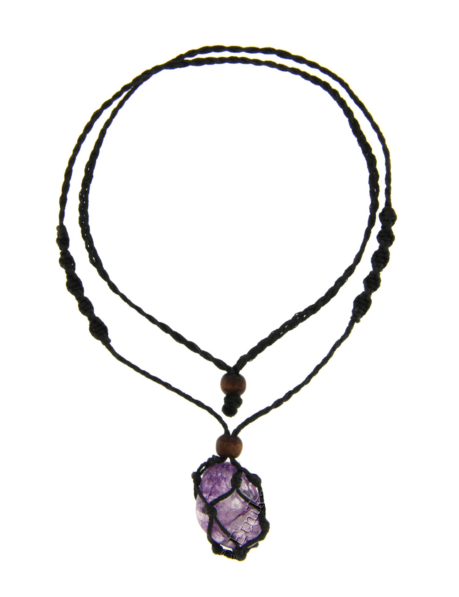 WAXED COTTON NECKLACE WITH PRECIOUS STONE HOLDER CAGE.