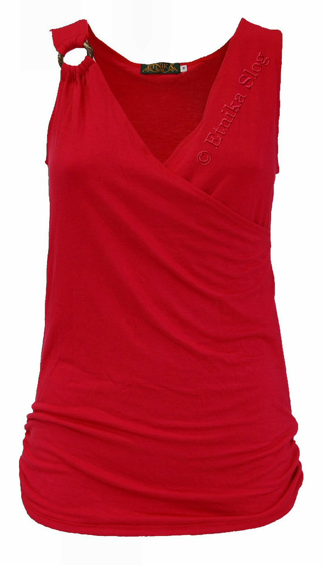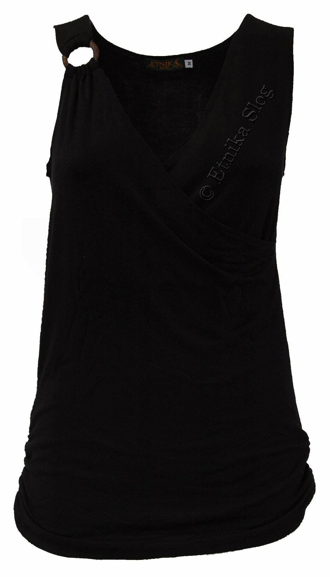 TOP IN COTTON WITH ELASTANE, V NECKLINE, WITH A COCONUT RING.