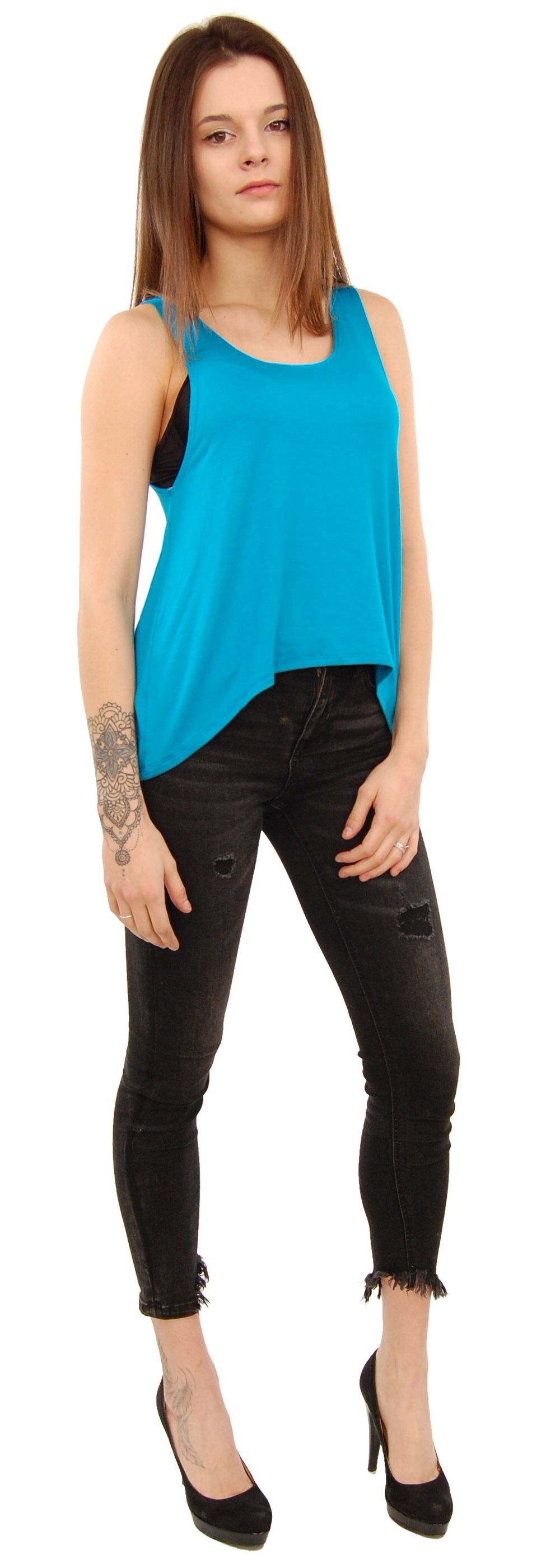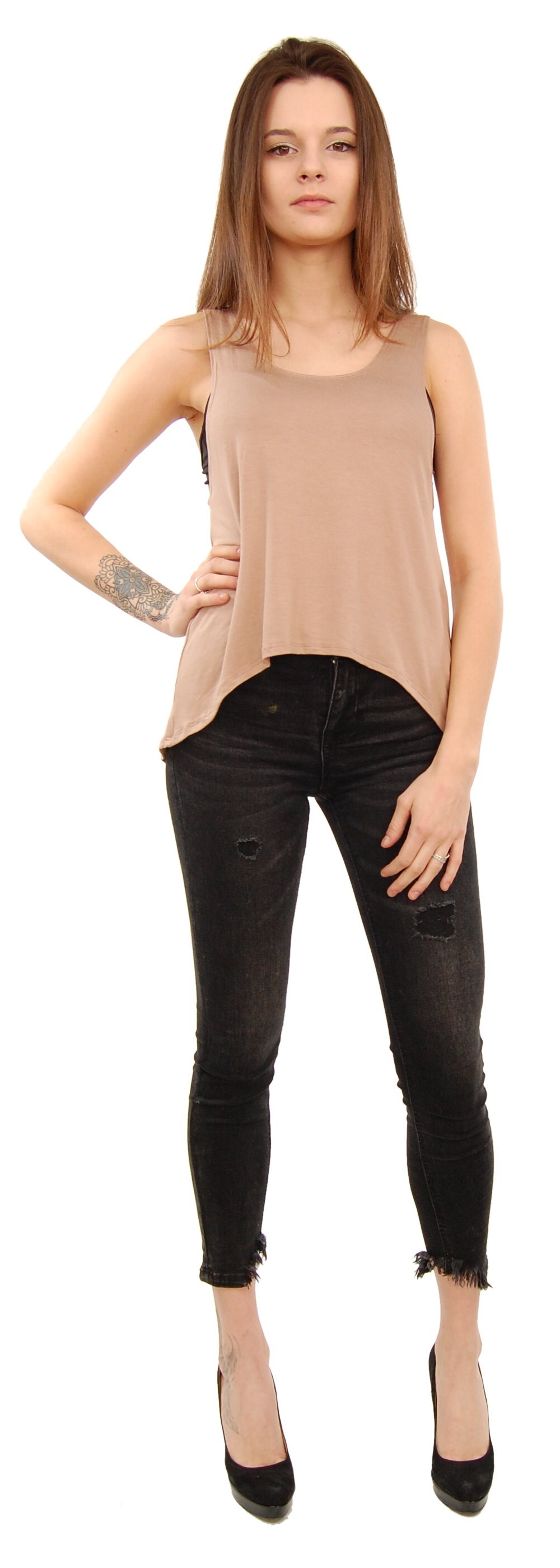 TOP MADE OF COTTON, VISCOSE AND ELASTANE, WITH LONGER BACK.