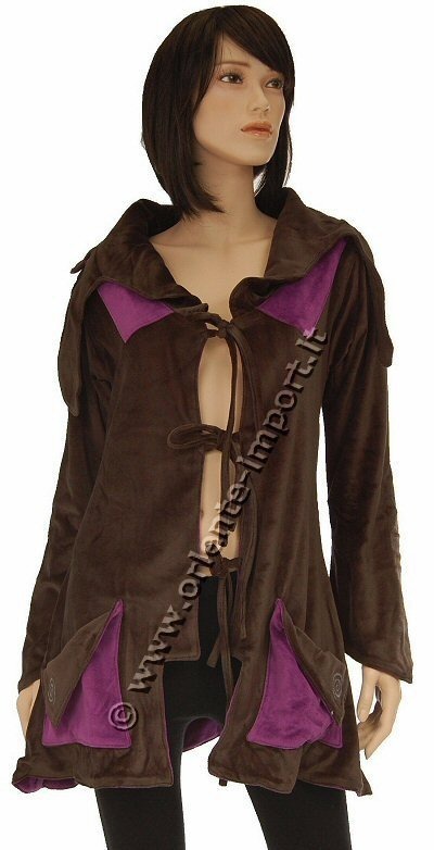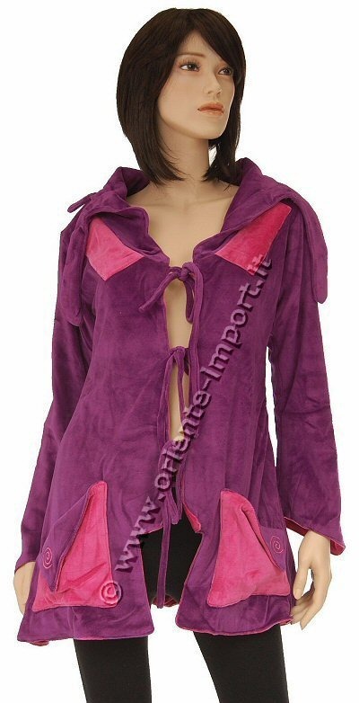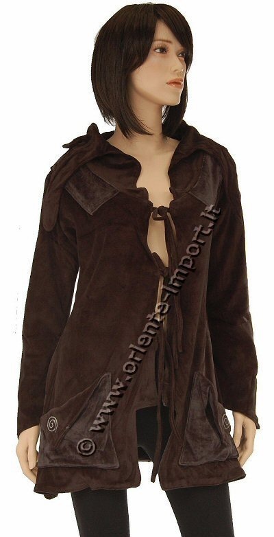 LONG VELVET JACKET WITH FLEECE INSIDE, OPENED ON THE FRONT SIDE WIT BIG NECK AND TWO POCKETS.