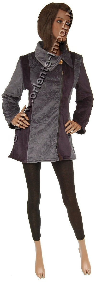 VELVET LONG EMBROIDERED JACKET, STAMPED, WITH FLEECE INSIDE,