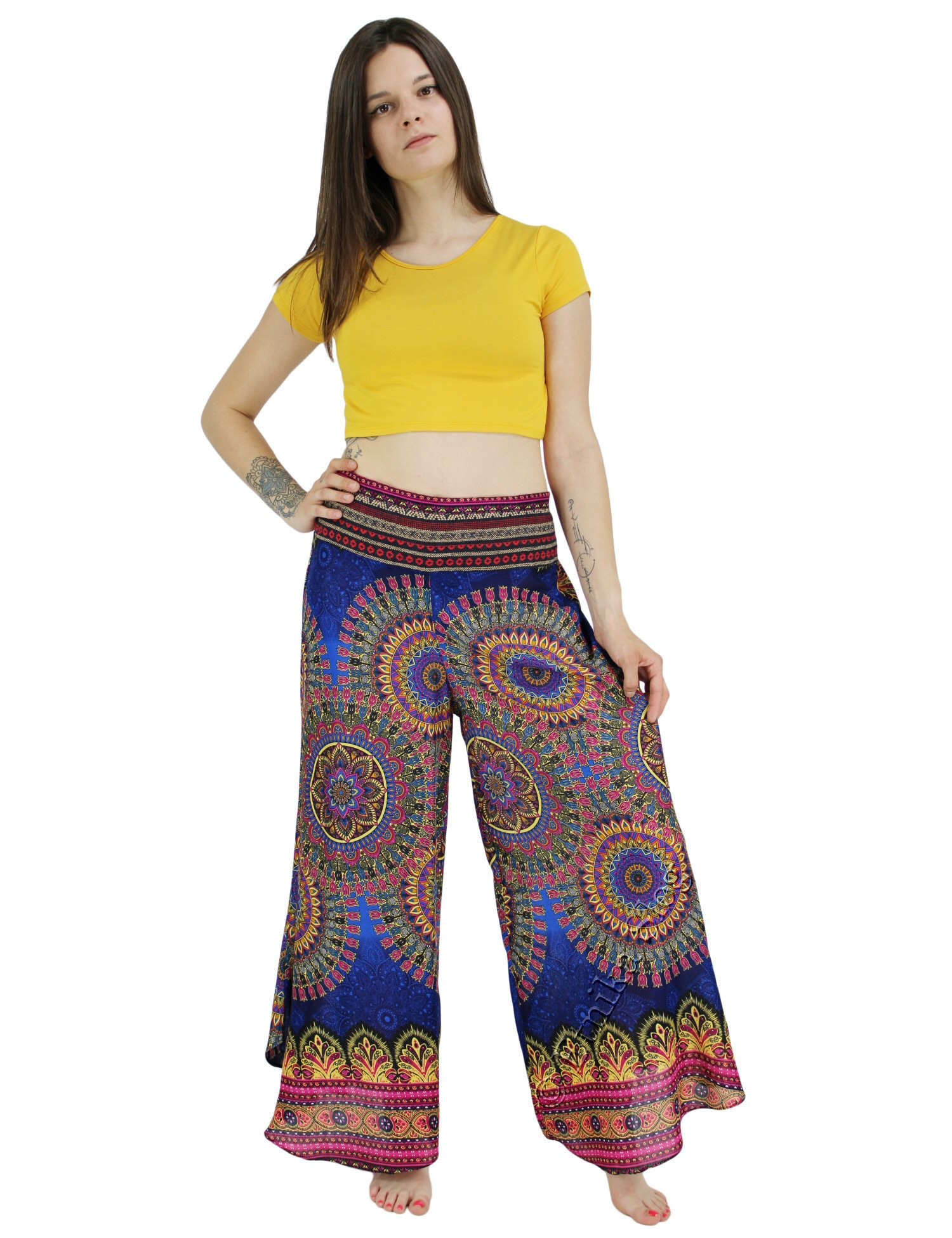 WIDE-LEG TROUSERS MADE OF VISCOSE WITH EMBROIDERY AT ELASTIC WAIST.