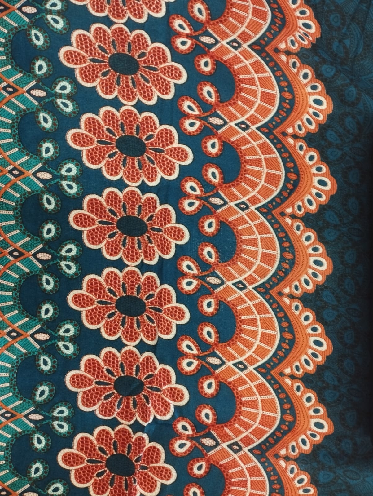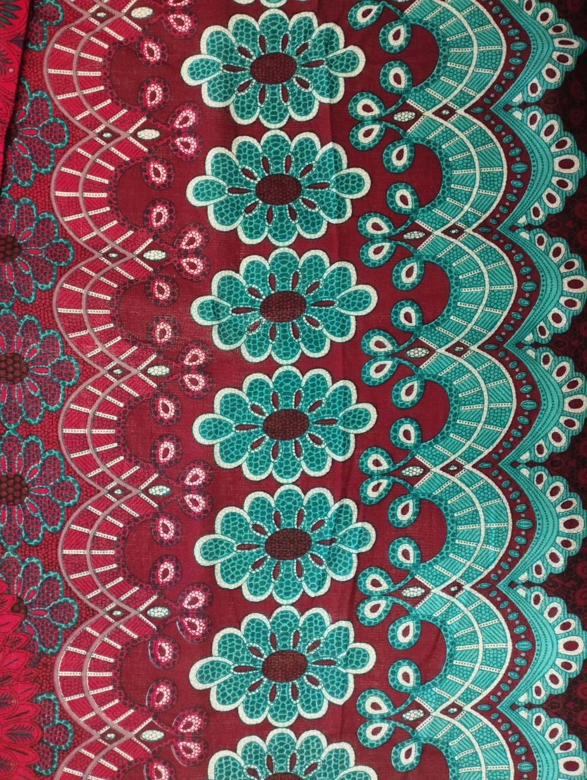 LONG SKIRT IN LIGHTWEIGHT INDIAN COTTON, WITH AN ELASTIC BAND AT WAIST, WITH VOLANTS.FEATURING A FLOWER PRINT, AS SHOWN IN THE PHOTOS.ONE SIZE.