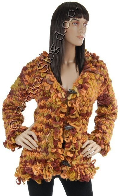 WOMAN JACKET IN COARSE WOOL WEAVED BY HAND WITH FRINGES FREE SIZE.