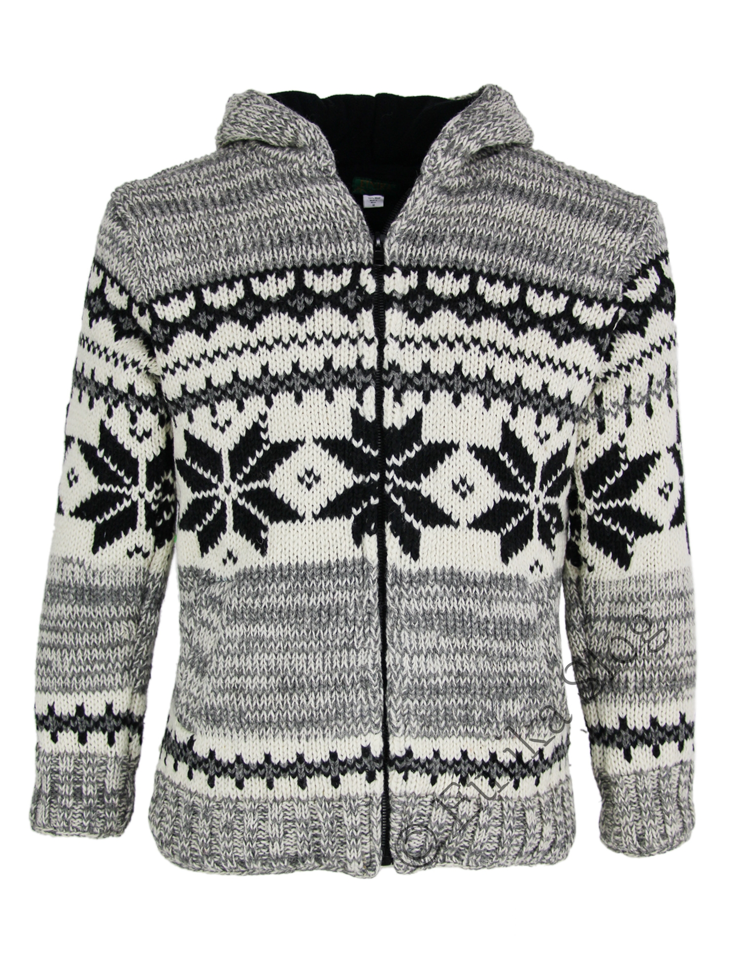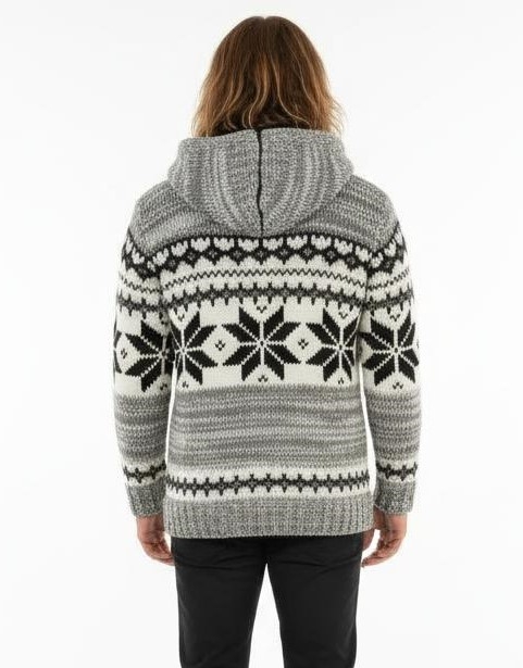 COSY WOOLLEN WINTER JACKET, FULLY LINED, WITH HOOD AND SIDE POCKETS.
