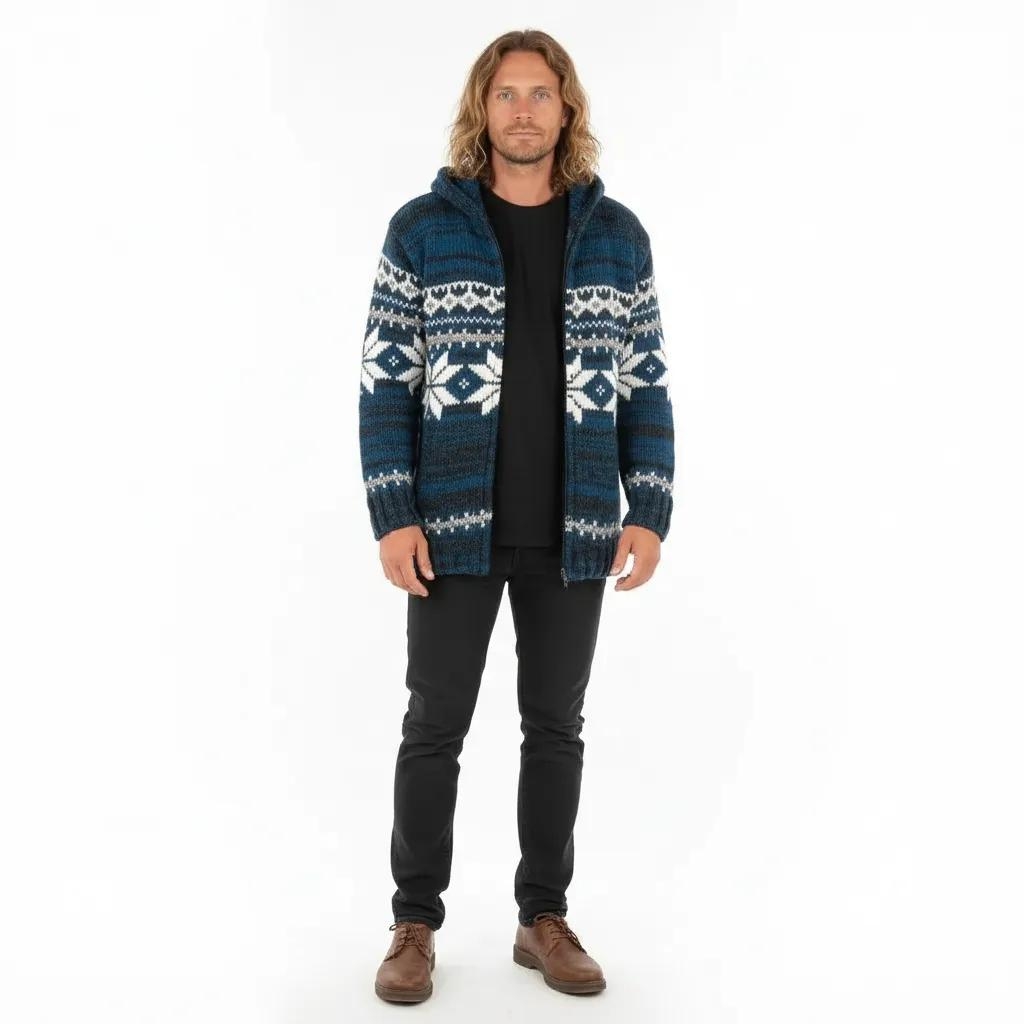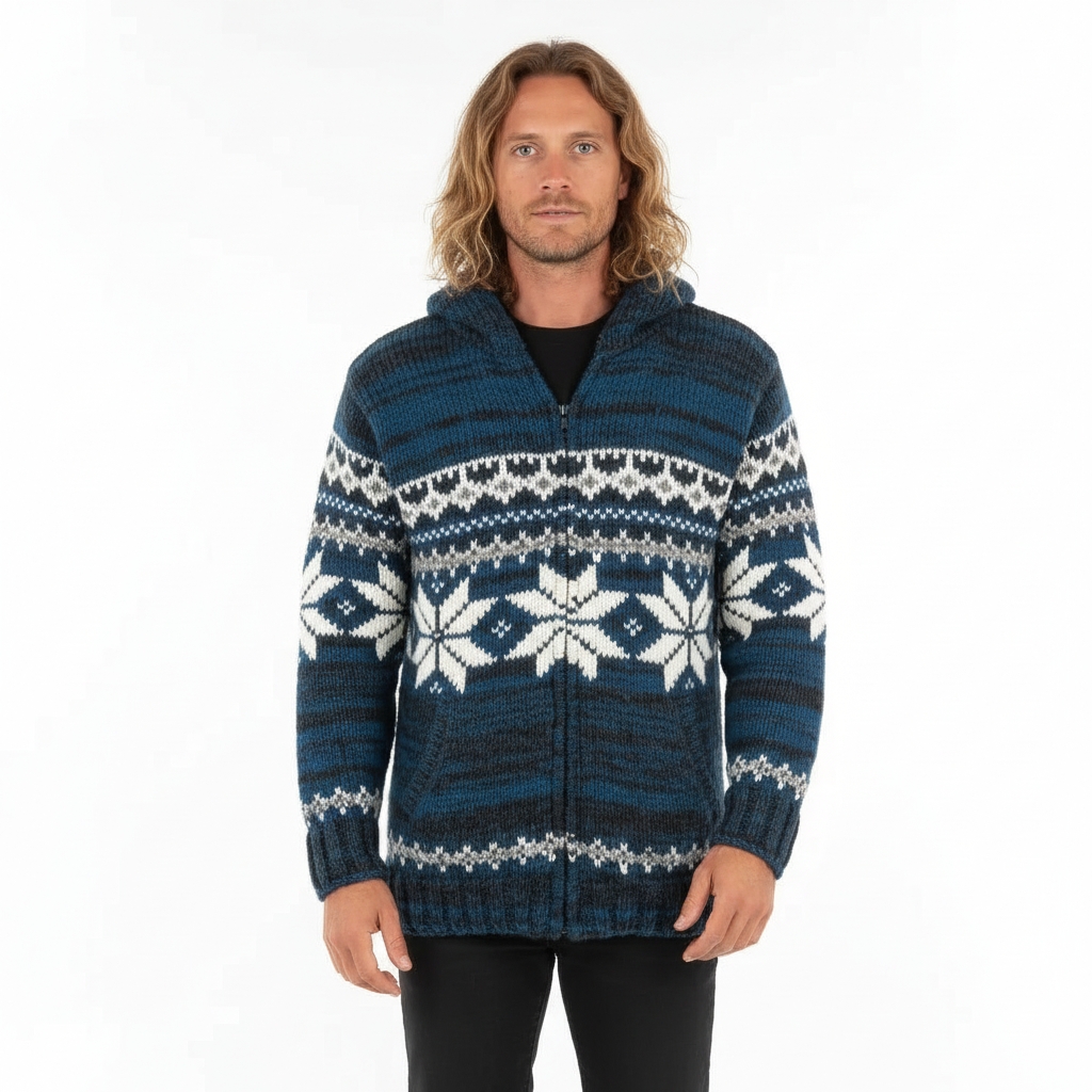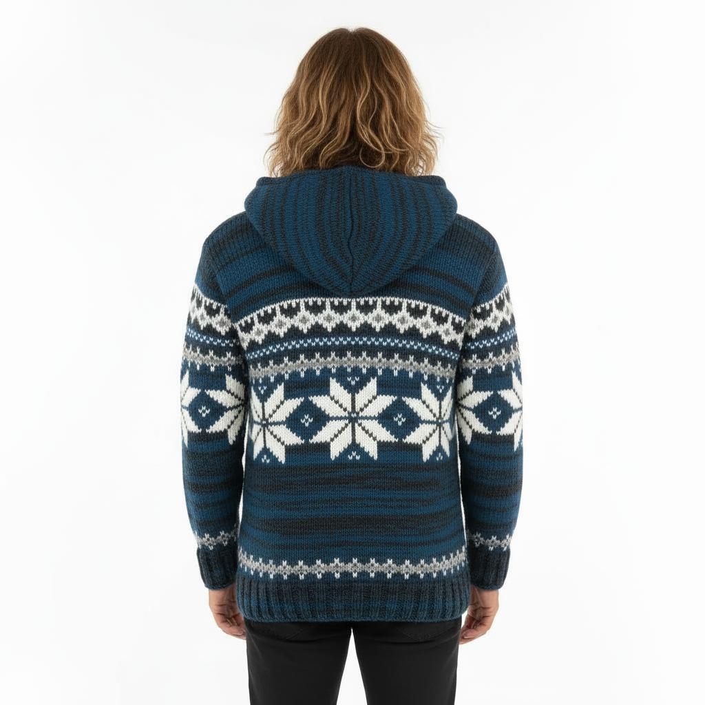 COSY WOOLLEN WINTER JACKET, FULLY LINED, WITH HOOD AND SIDE POCKETS.
