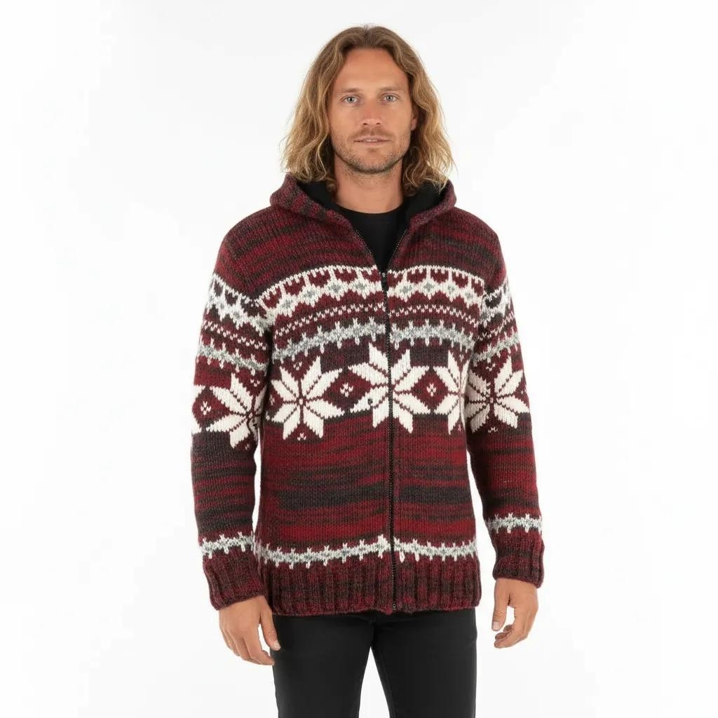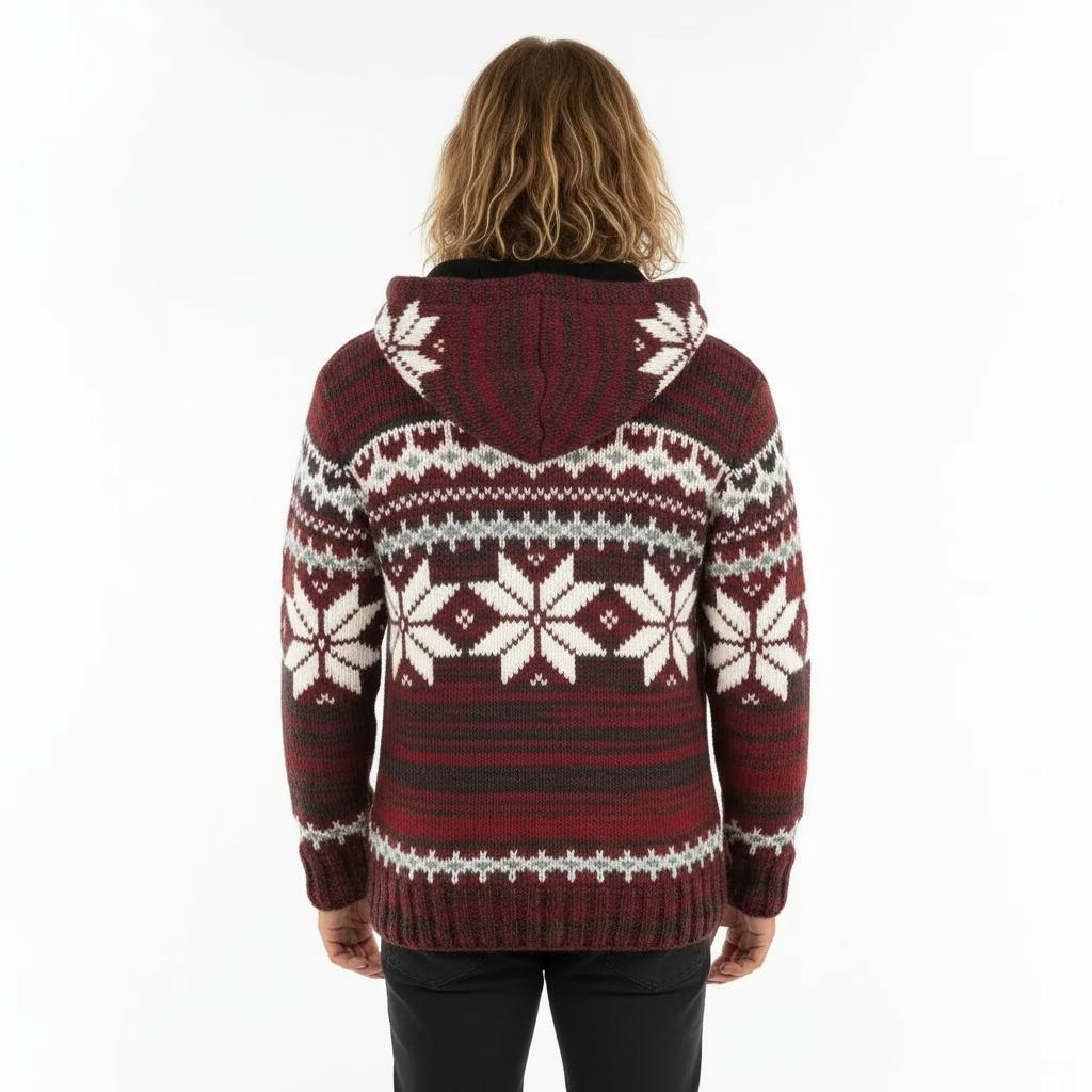 COSY WOOLLEN WINTER JACKET, FULLY LINED, WITH HOOD AND SIDE POCKETS.
