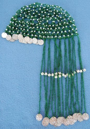 COPRICAPO DANZA DEL VENTRE RETE DI PERLINE E PALLINE CON MEDAGLIETTE.
