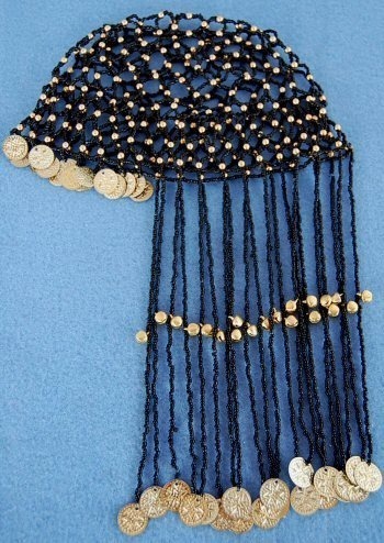 COPRICAPO DANZA DEL VENTRE RETE DI PERLINE E PALLINE CON MEDAGLIETTE.