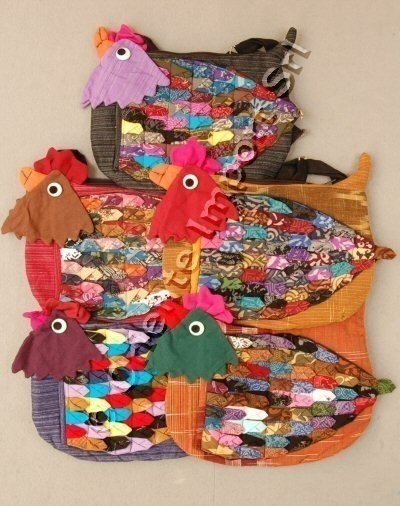 BORSA IN COTONE A TRACOLLA A FORMA DI GALLINA.