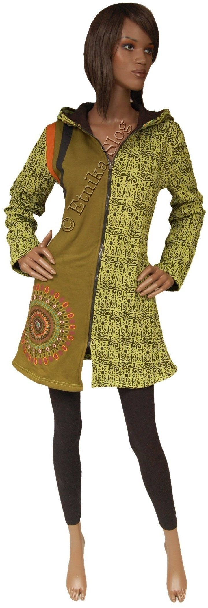 CAPPOTTO IN COTONE STAMPATO CON RICAMI, INTERNO IN PILE.