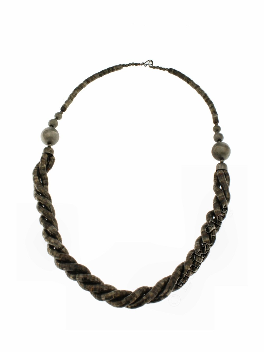COLLANA IN METALLO BIANCO, SEZIONE TONDA, FILI MONOCOLORE O 2 COLORI INTRECCIATI E SFERE.