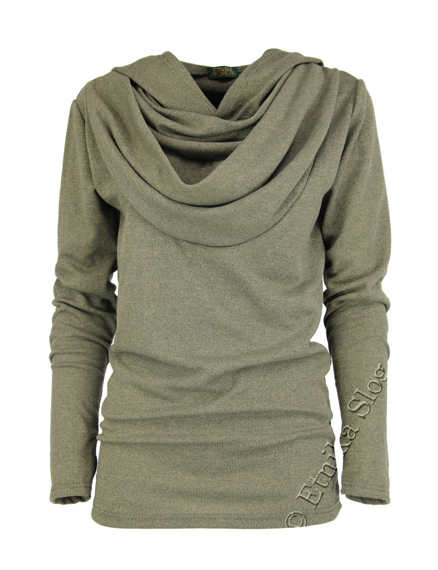 MAGLIA MANTELLA IN TESSUTO CALDO, TINTA UNITA E CAPPUCCIO