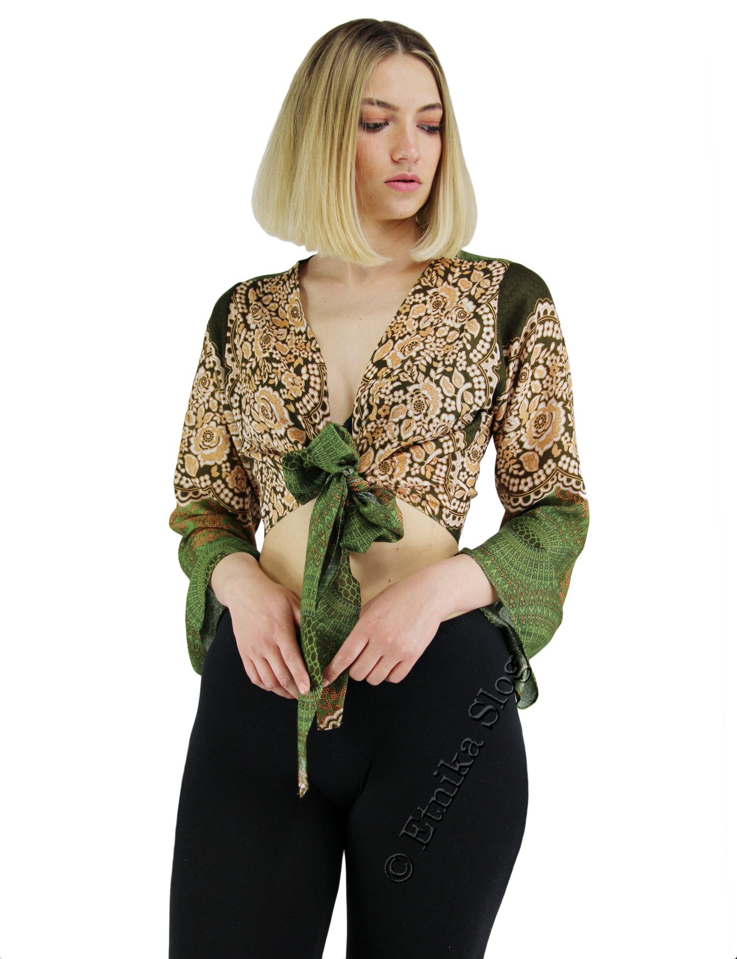 BOLERO INCROCIATO IN VISCOSA STAMPATO.