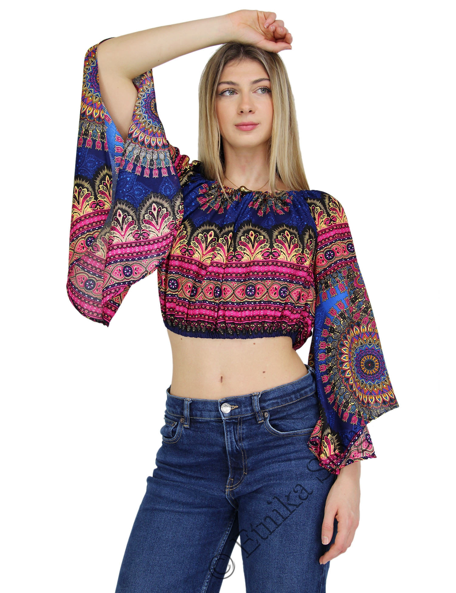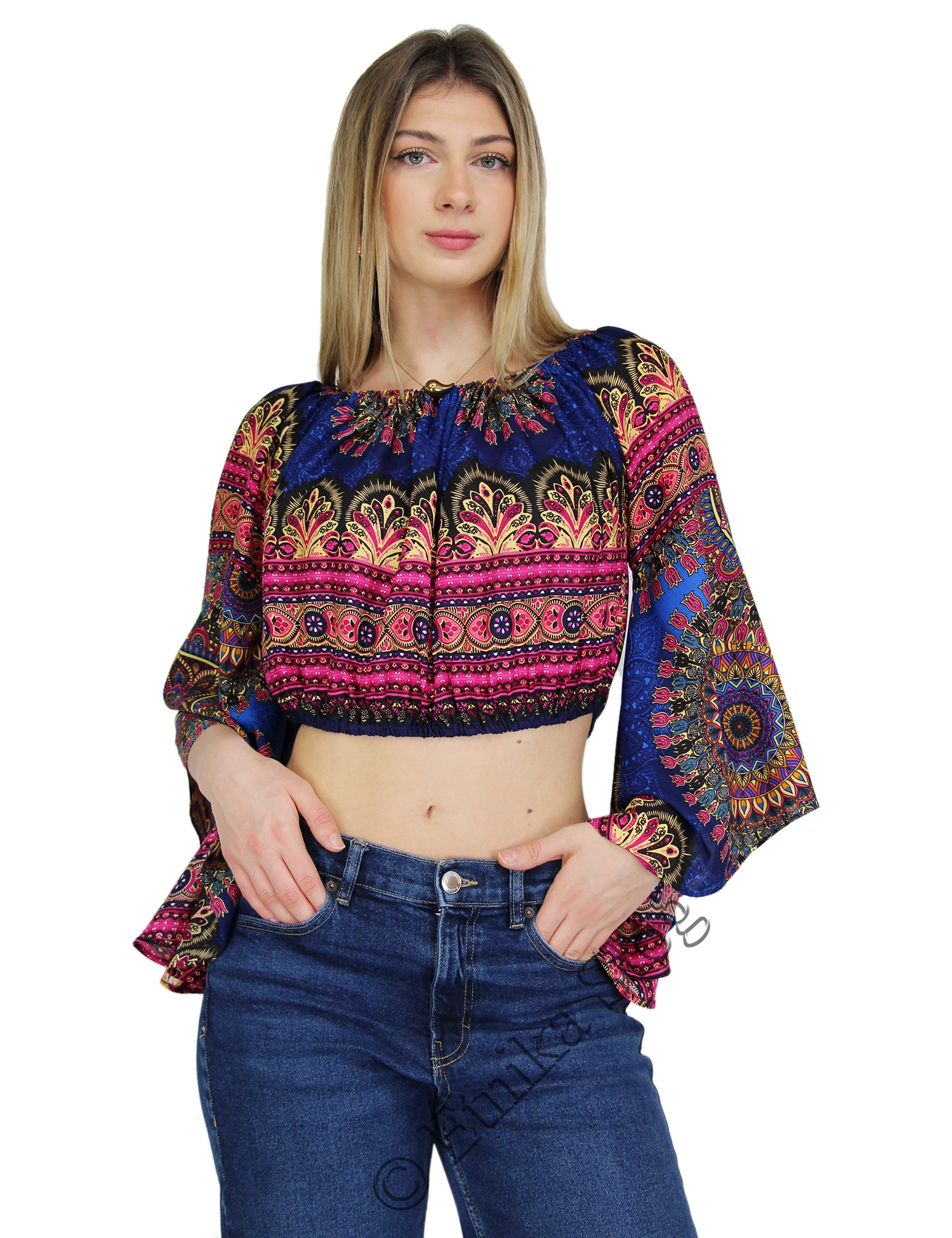 BOLERO/COPRISPALLE IN VISCOSA STAMPATO CON MANICHE AMPIE ED ELASTICO IN VITA E COLLO.