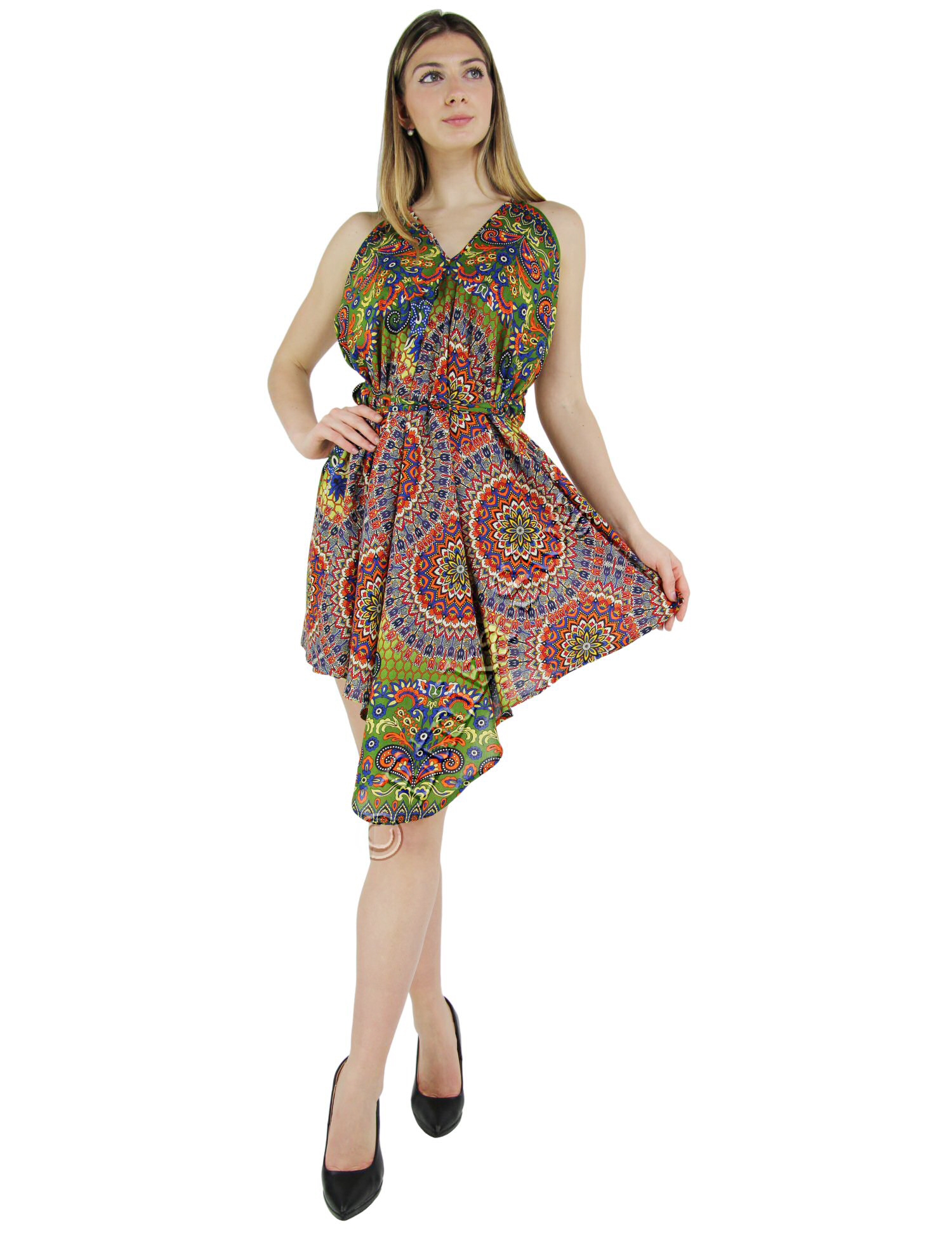 ABITO CORTO IN COTONE LEGGERO INDIANO.SCHIENA APERTA E LACCETTO SOTTO IL SENO, LACCETTI CON PONPON FINALE.STAMPE MISTE, DISPONIBILE IN VARI COLORI.FREE SIZE