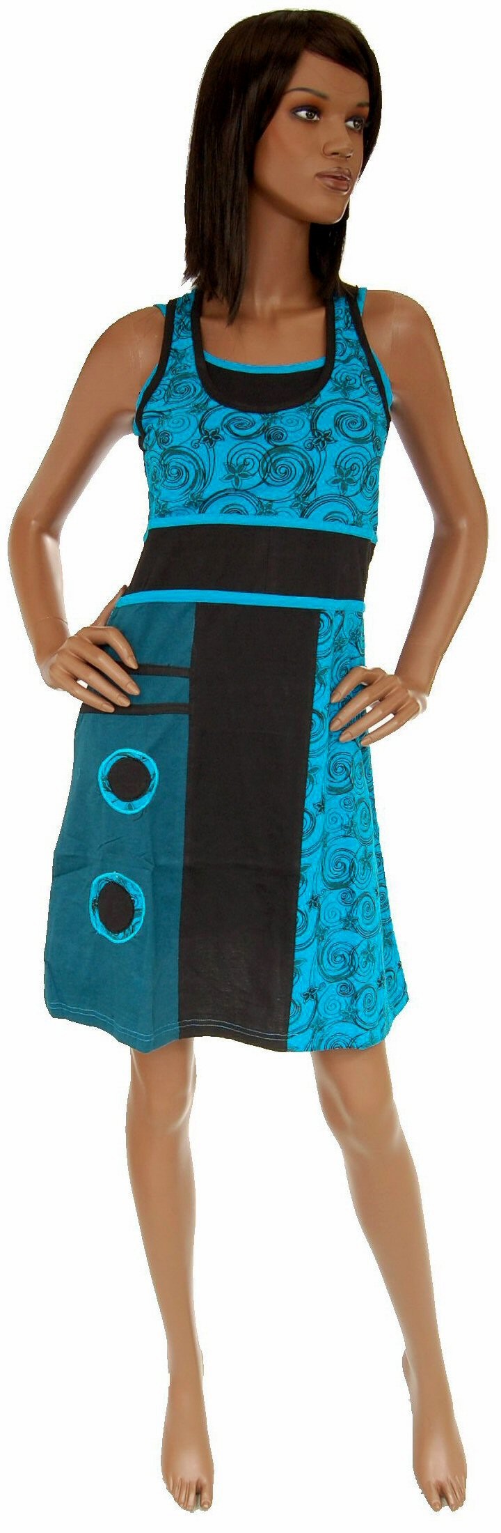 LAHKA POLETNA OBLEKA IZ BOMBAŽA, BREZ ROKAVOVZ NASTAVLJIVIMI NARAMNICAMI IN TRAKOM.NA VOLJO RAZLIČNI POTISKI IN UNIVERZALNA VELIKOST.