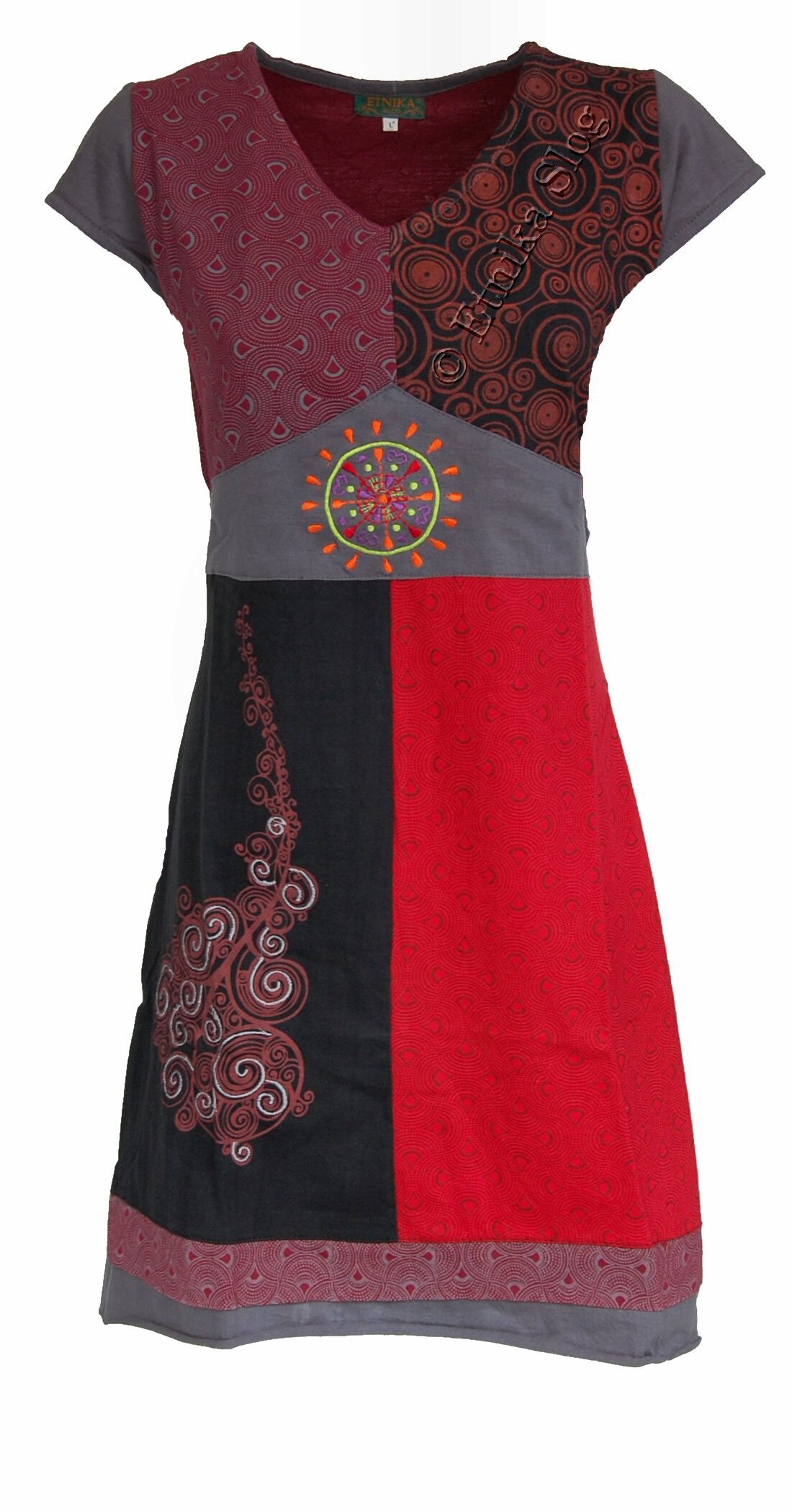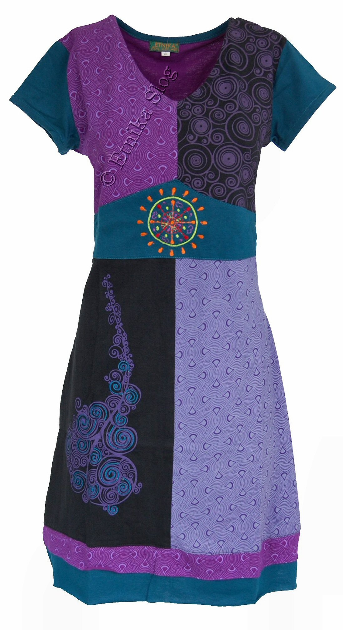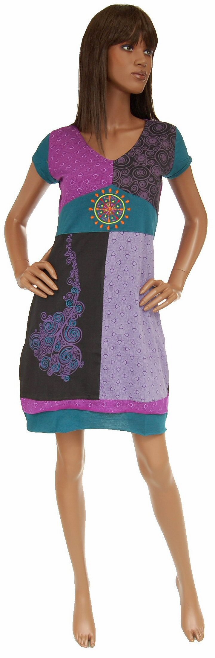 OBLEKA IZ BOMBAŽA S KRATKIMI ROKAVI, PATCHWORK.