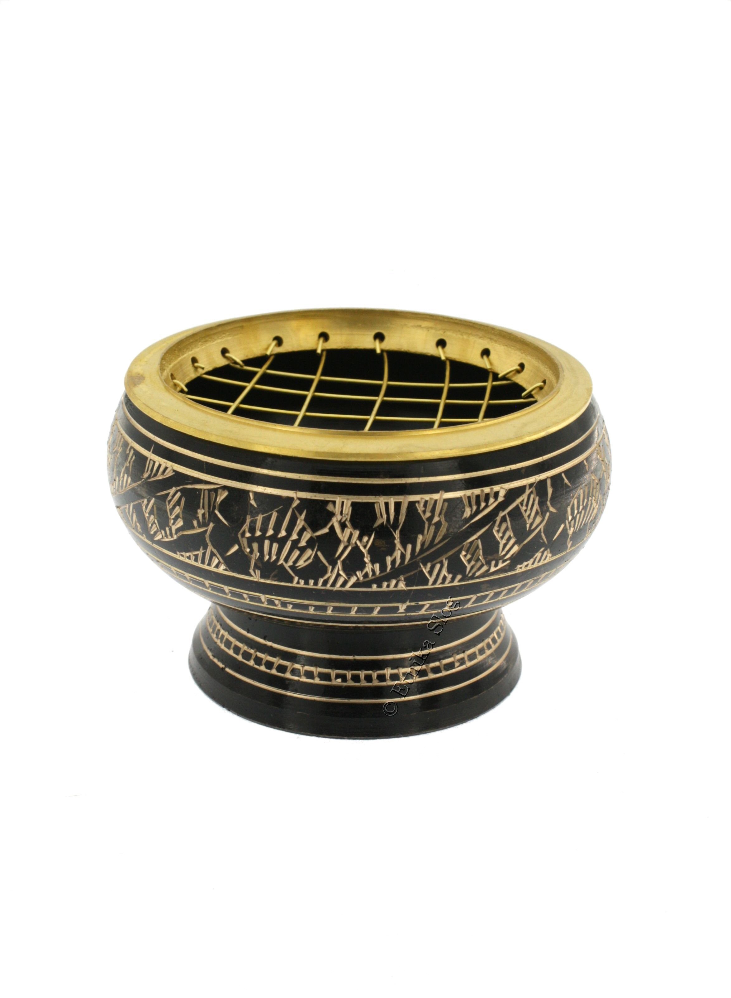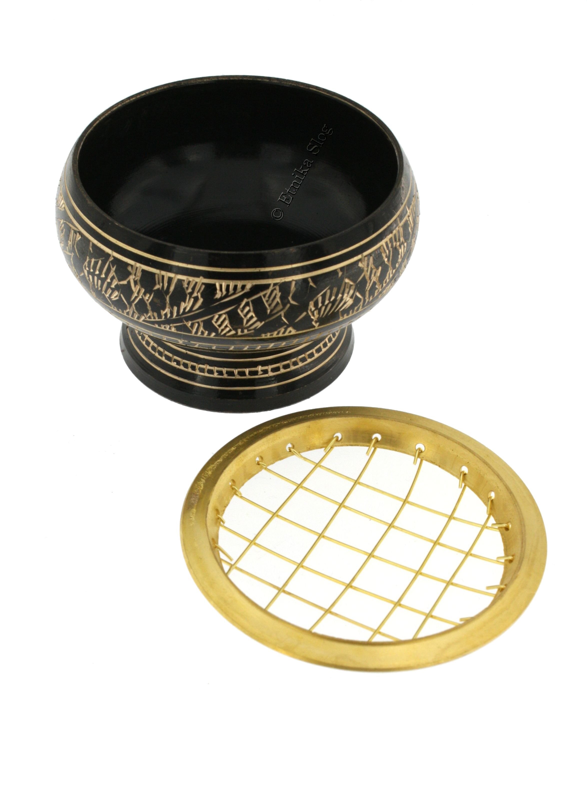 IZREZLJANA POSODA ZA KADILNO SMOLO IZ MEDENINE, S SNEMLJIVO MREŽICO.