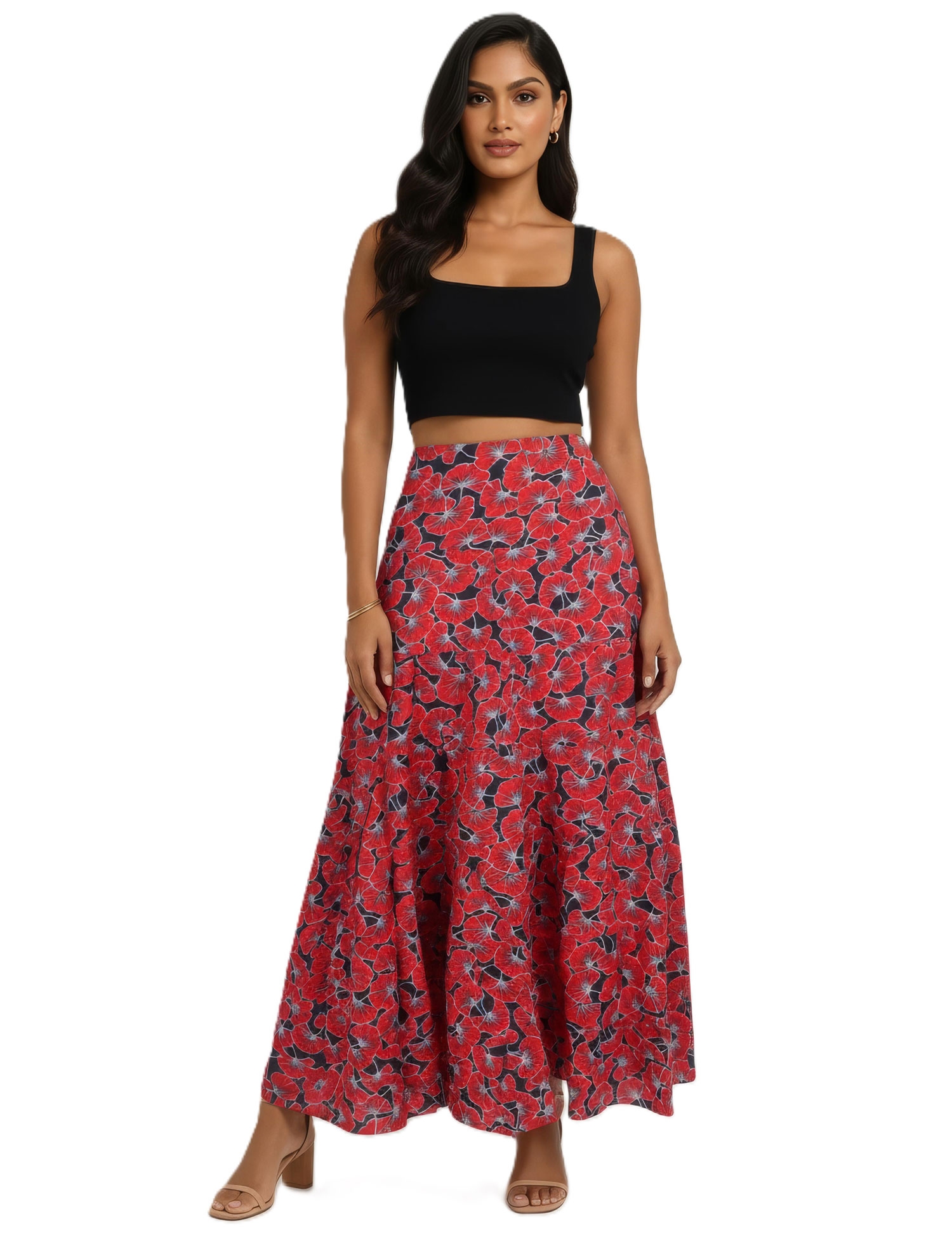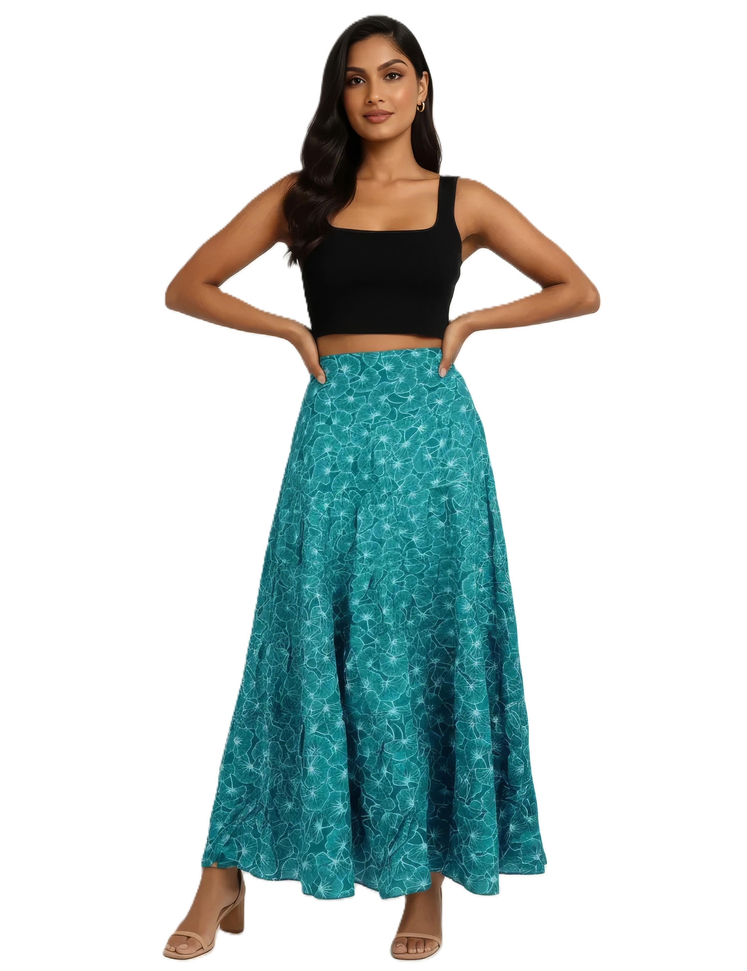 DOLGO KRILO IZ LAHKEGA INDIJSKEGA BOMBAŽA, Z ELASTIČNIM PASOM, Z VOLANČKI.Z MOTIVOM CVETOV, KOT NA SLIKI.UNIVERZALNA VELIKOST.