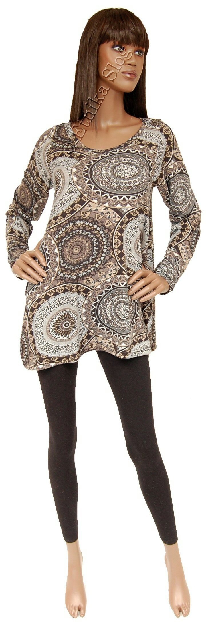 OBLEKA, MAXI MAJICA IZ TKANINE Z ELASTANOM, Z DOLGIMI ROKAVI, OKROGEL IZREZ.