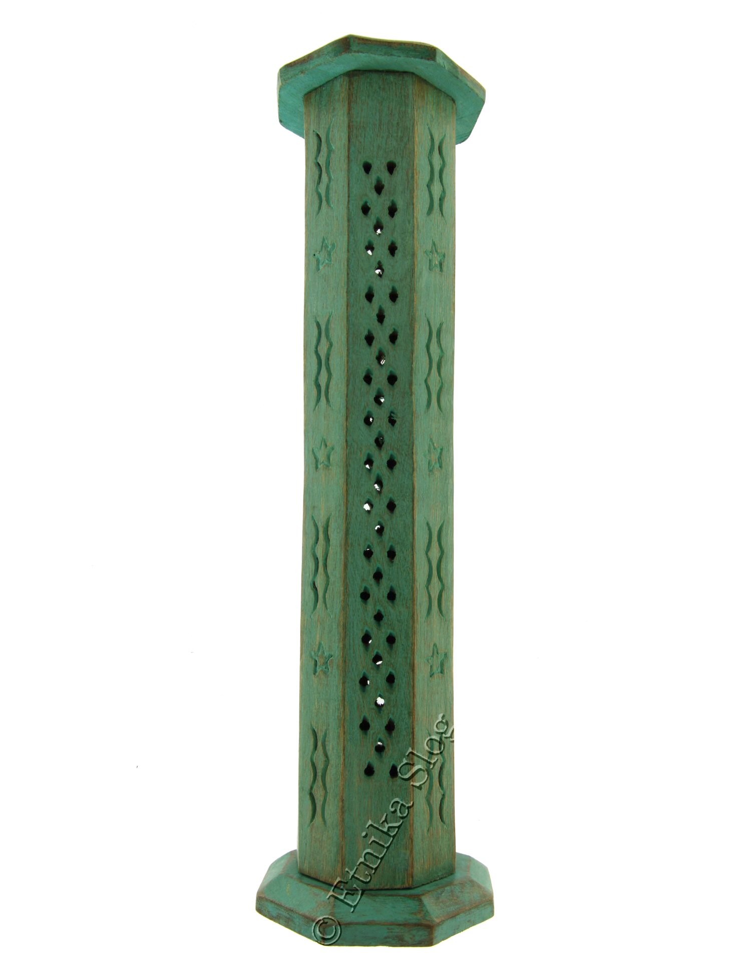 STOJALO ZA DIŠEČE PALČKE V OBLIKI STEBRA, OSMEROKOTNO, BARVAN IN PERFORIRAN LES.
